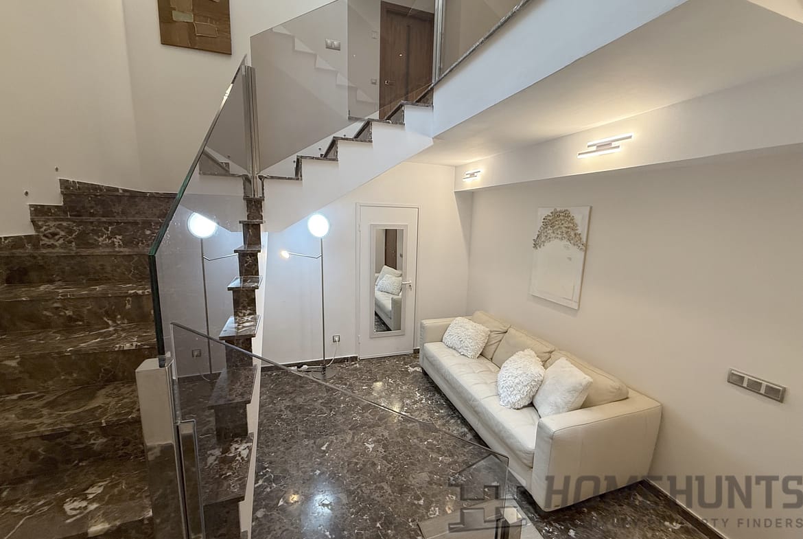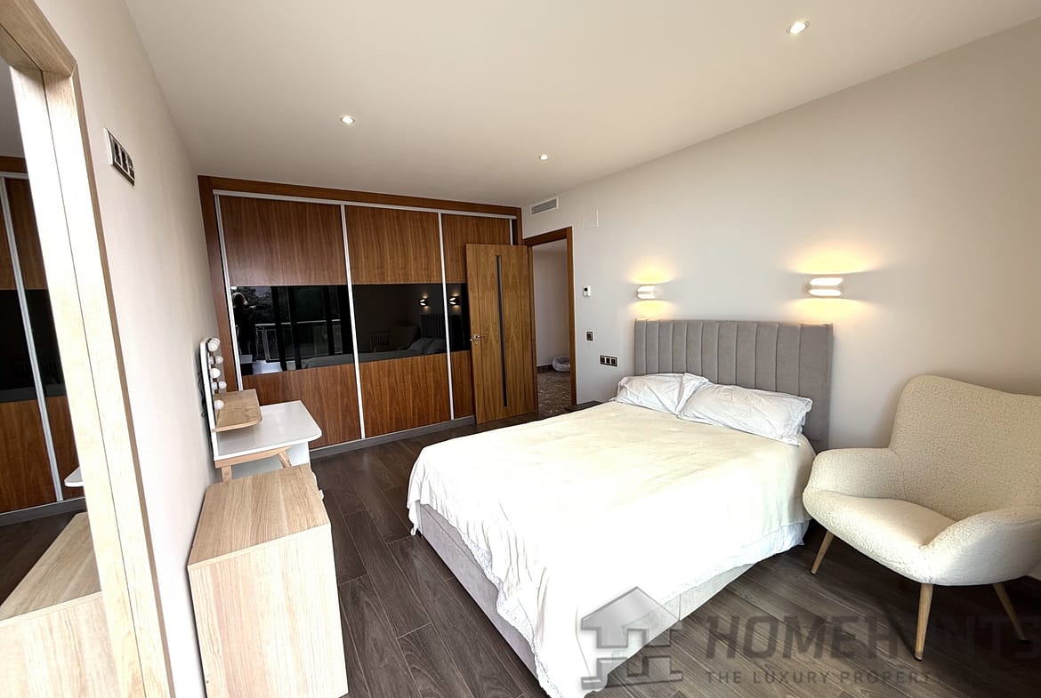 The fully equipped gourmet kitchen is designed for both functionality and sophistication, while an elevator discreetly connects the floors for effortless access. A private courtyard, elegant storage solutions, and six built-in wardrobes add to the villa’s practical luxuries.