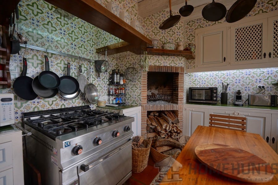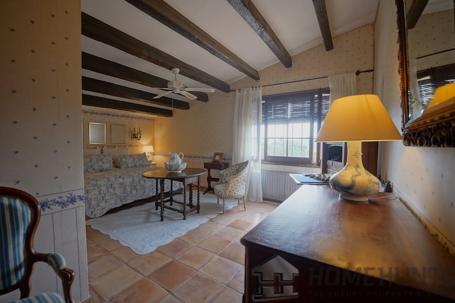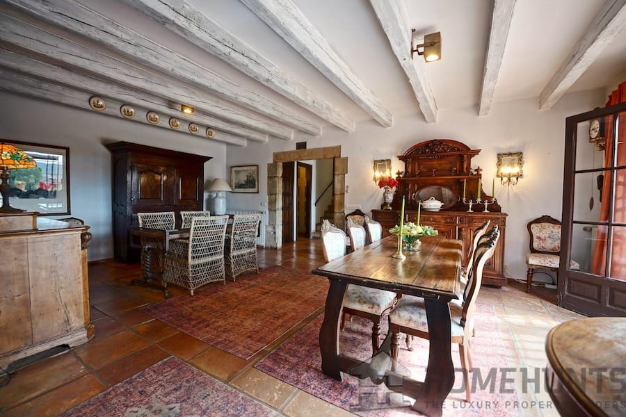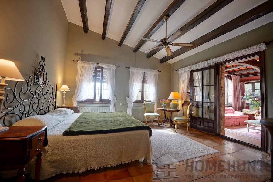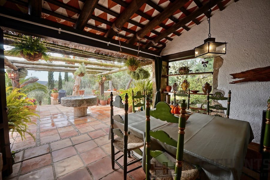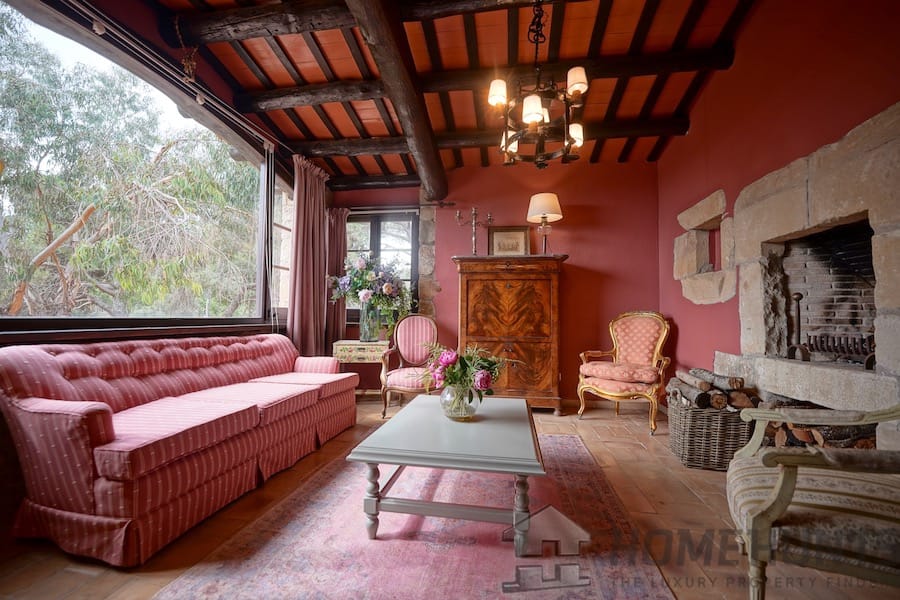 With a 6,764 m2 plot, the house has 371 useful m2. In front of the house there is a large terrace with views of the town, partially covered to accommodate a summer dining room and kitchen. From the terrace there are two direct entrances to both the kitchen and the living-dining room. The original and well-equipped kitchen has a fireplace, as well as a small dining area. There are 3 bedrooms with their ensuite bathrooms, with the master suite also featuring a cosy living room with fireplace and beautiful views of the town and the church. There is another large room, also with a fireplace, and a music room.