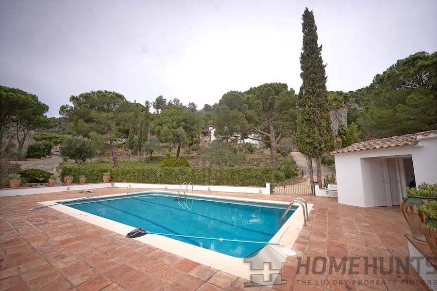For cars there are 2 closed garages, as well as a large outdoor parking space. The garden is arranged in terraces that go down to a large separate enclosure with a swimming pool, sun terrace and pool-house.