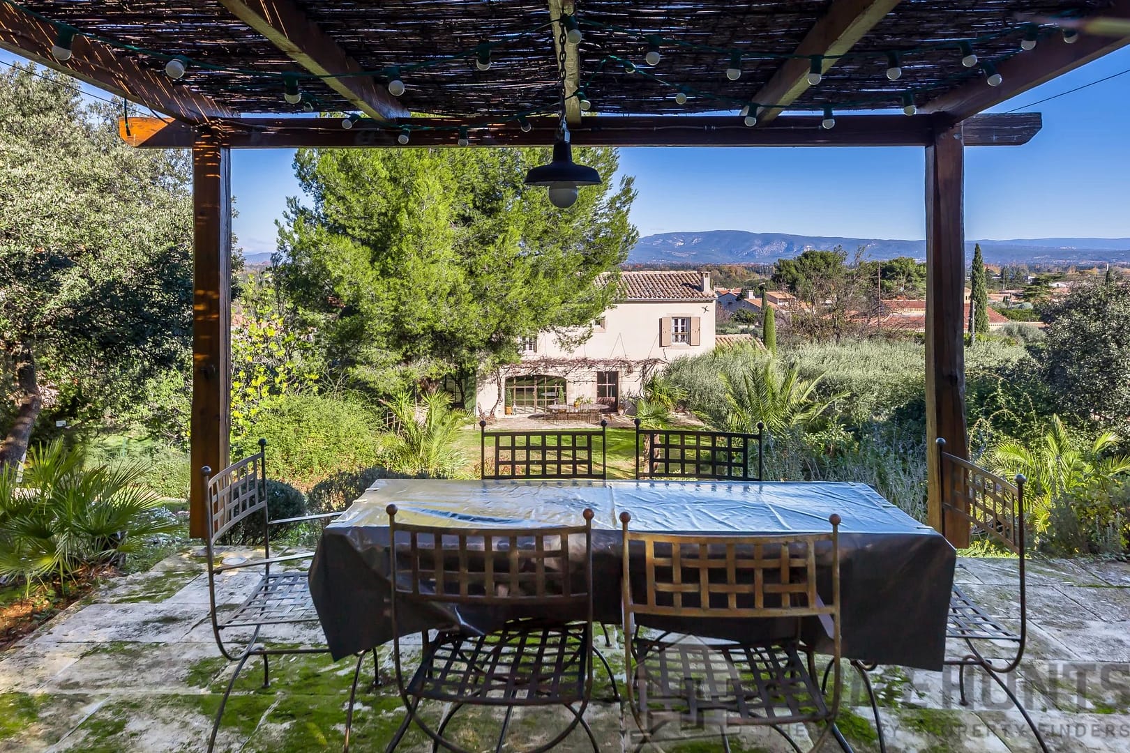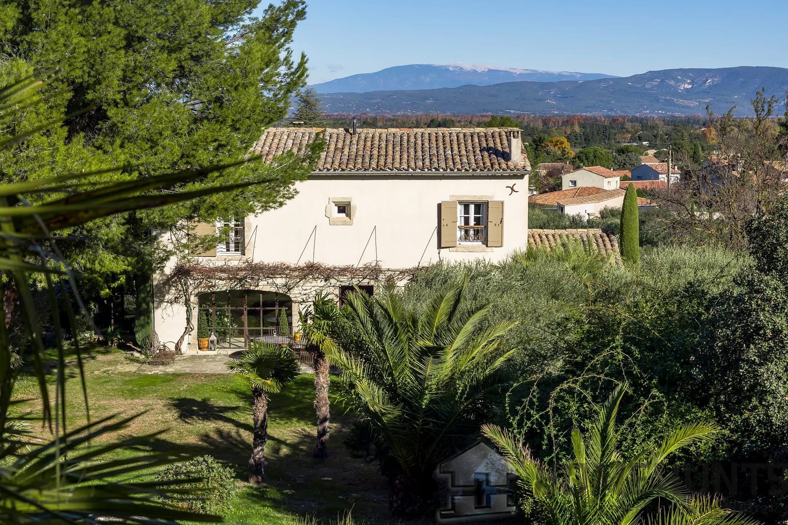 Outside, the landscaped garden extends harmoniously, adorned with olive trees, palm trees, and lush vegetation characteristic of the Provencal region. Sunny days can be enjoyed around the heated pool. The terraced terrain at the heart of this unique property offers an impressive terrace with a majestic view of Mont Ventoux. Sheltered by an elegant pergola, this outdoor space invites relaxation.