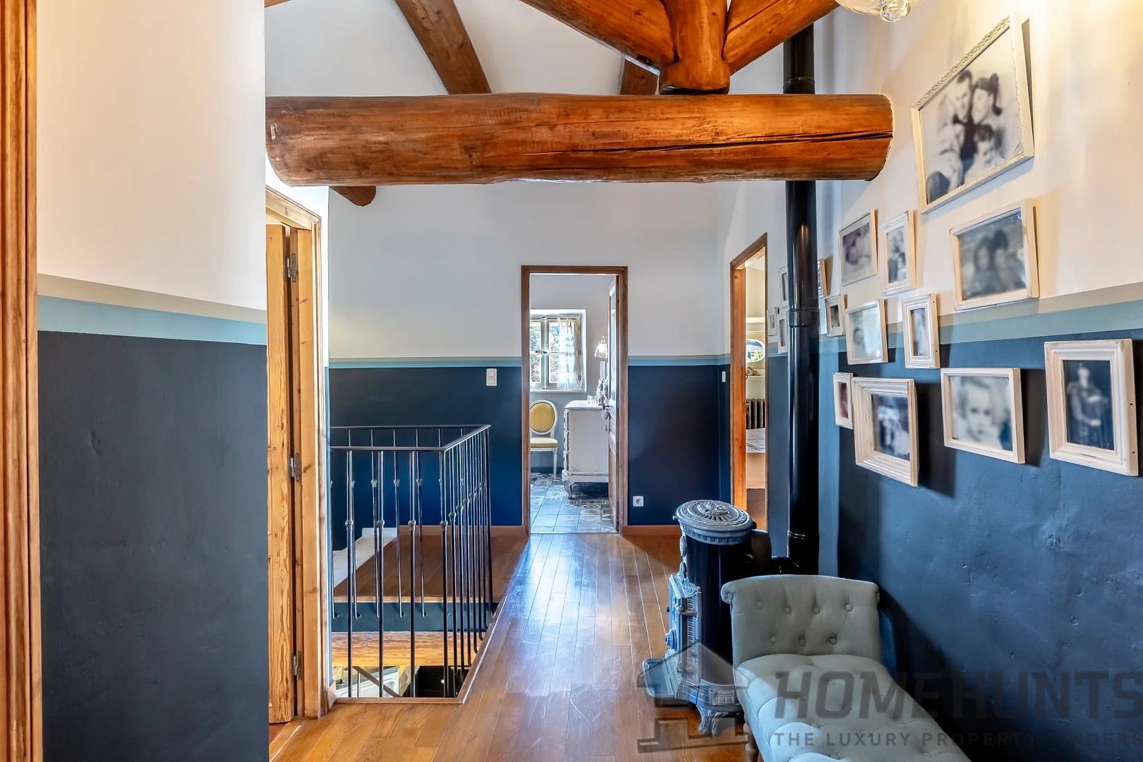 An elegant staircase leads to the upper floor, where three sumptuous bedrooms, all finely decorated, share an elegant living space. One of them boasts a generous walk-in closet and an en-suite bathroom.