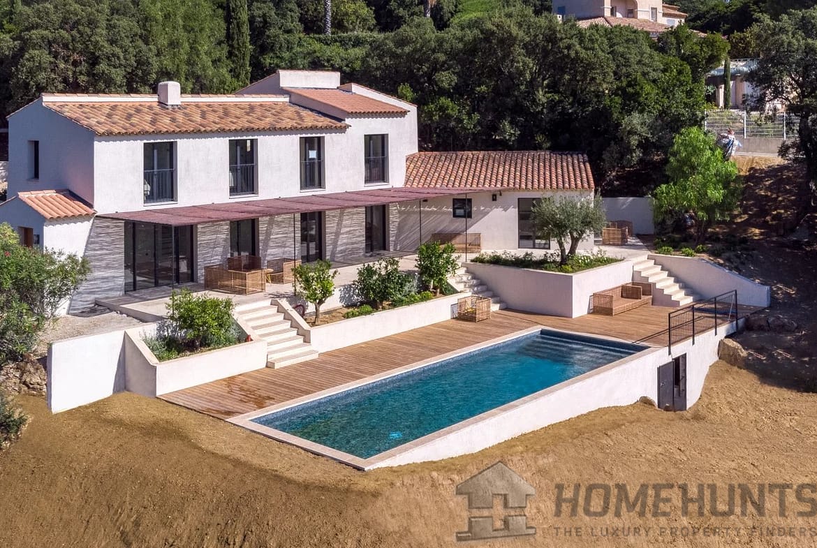 In the heart of a sought-after area of Cavalaire-sur-Mer, beautiful new villa with sea view, nestled in the hillside with enviable vistas.
