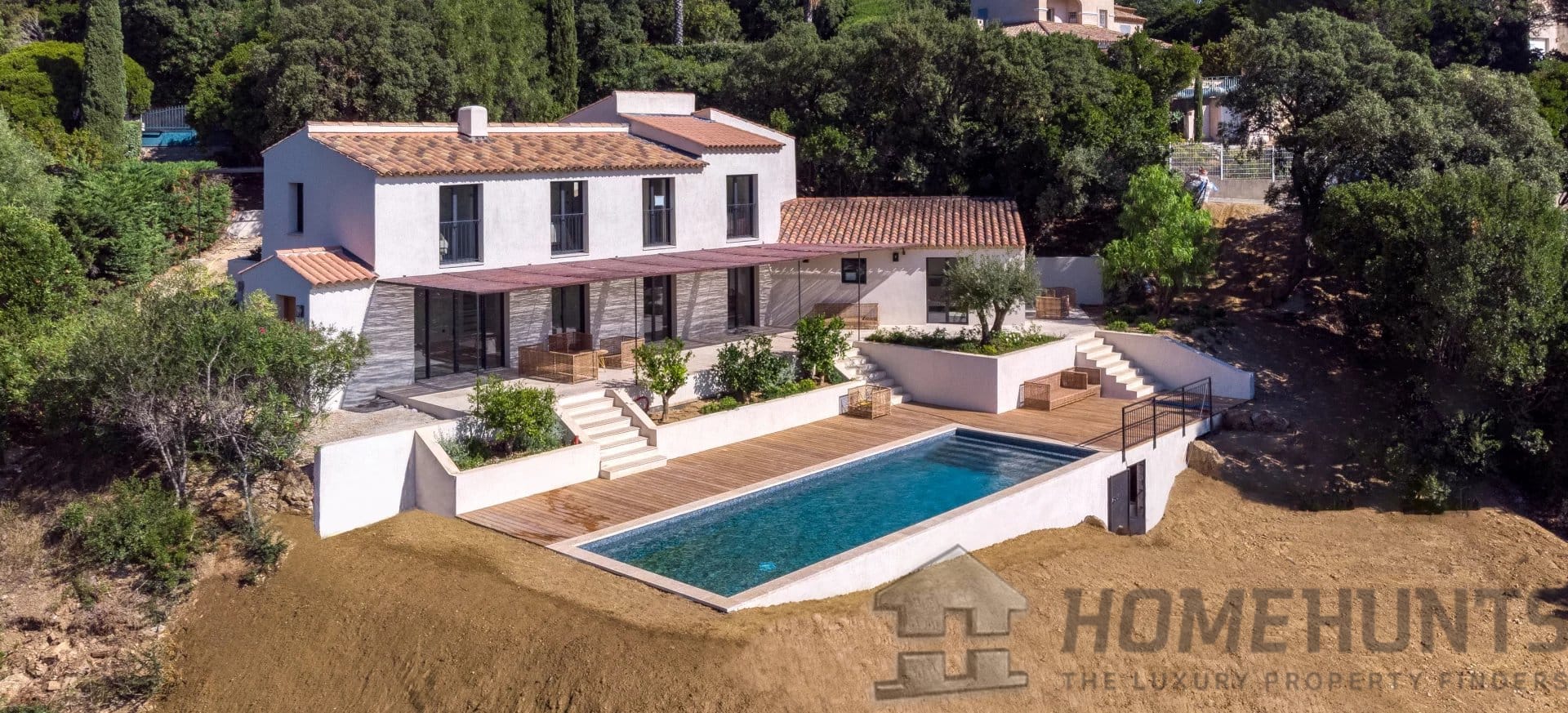 Built on a plot of more than 2000m2, the property enjoys large outdoor spaces, decorated with a 12x4m heated swimming pool surrounded by colorful Mediterranean species.
