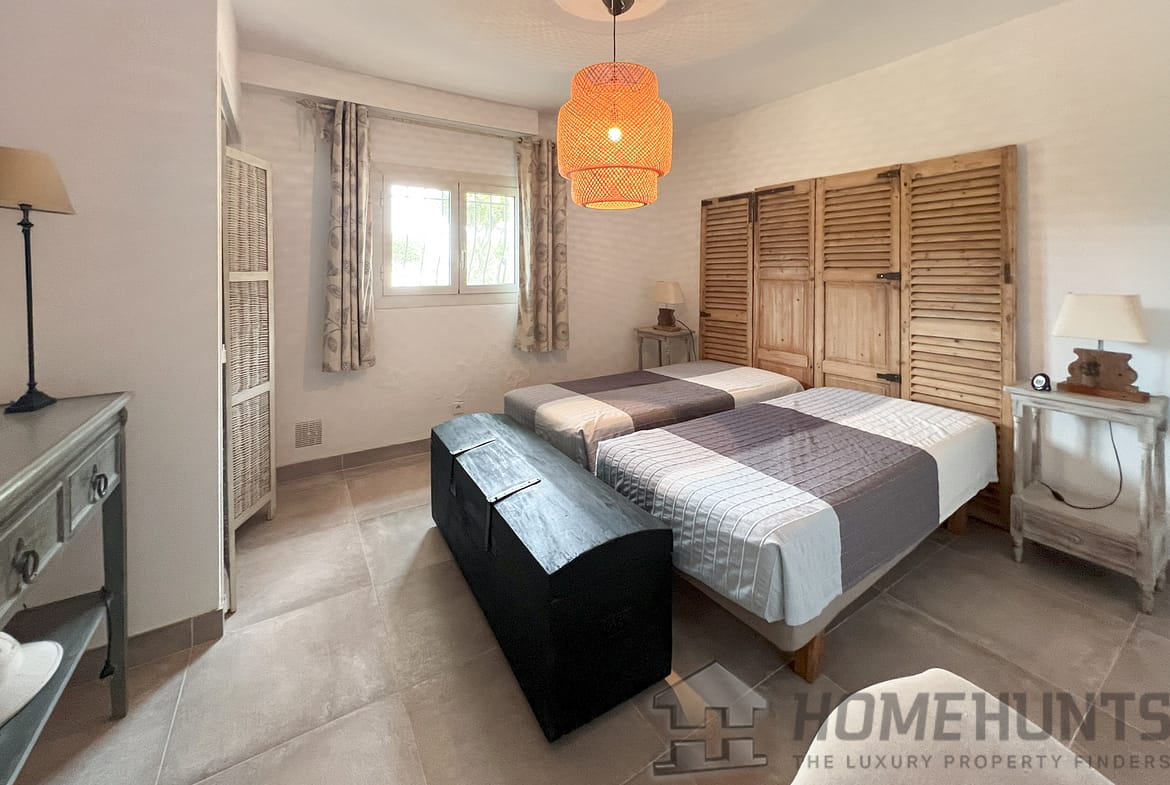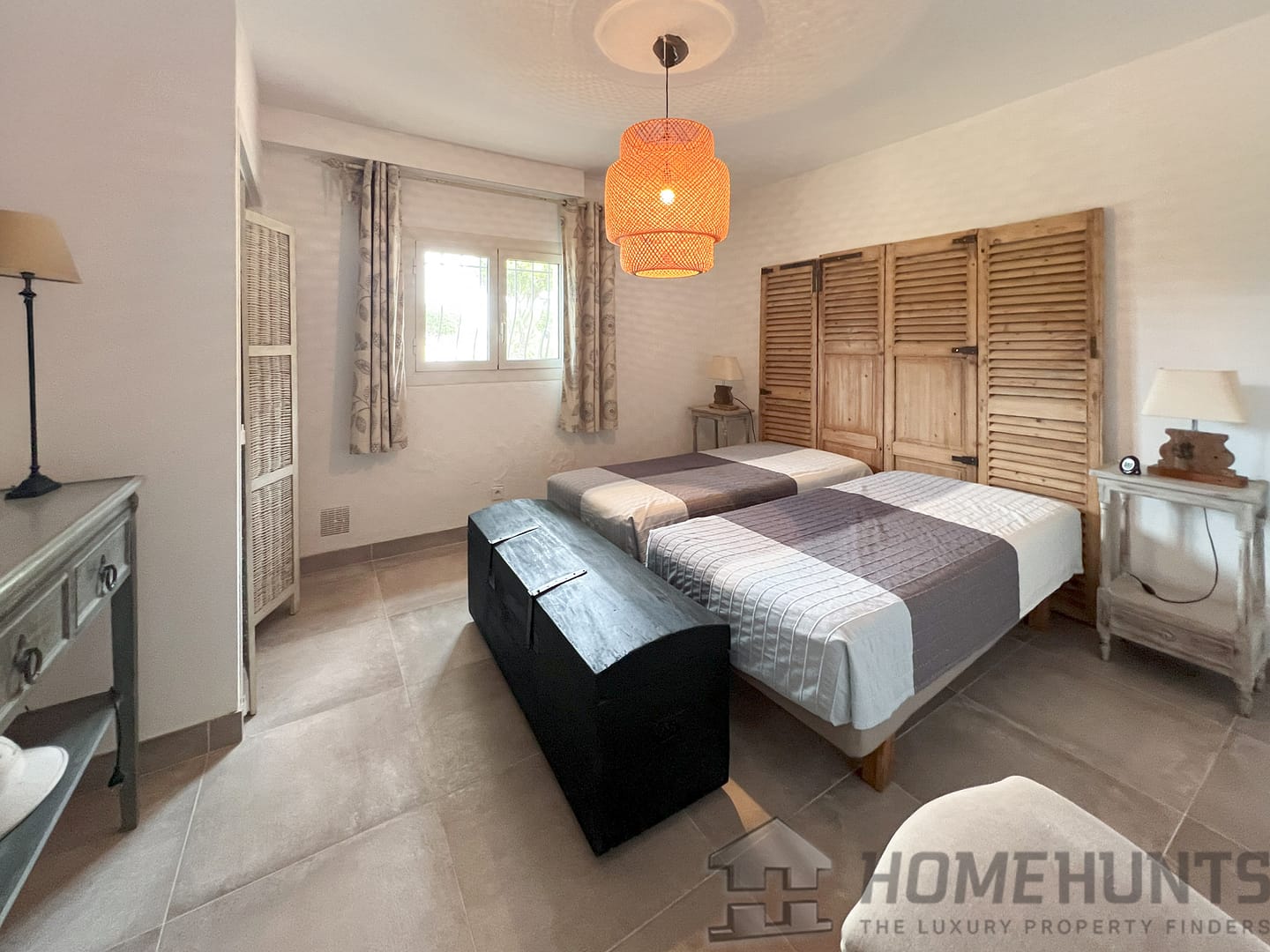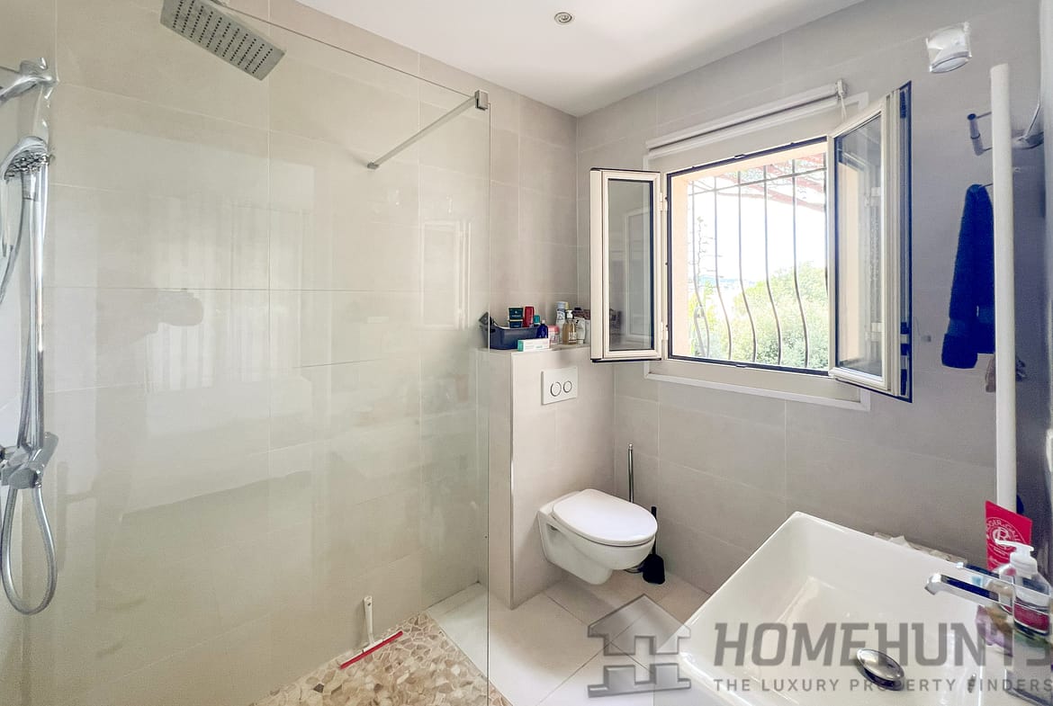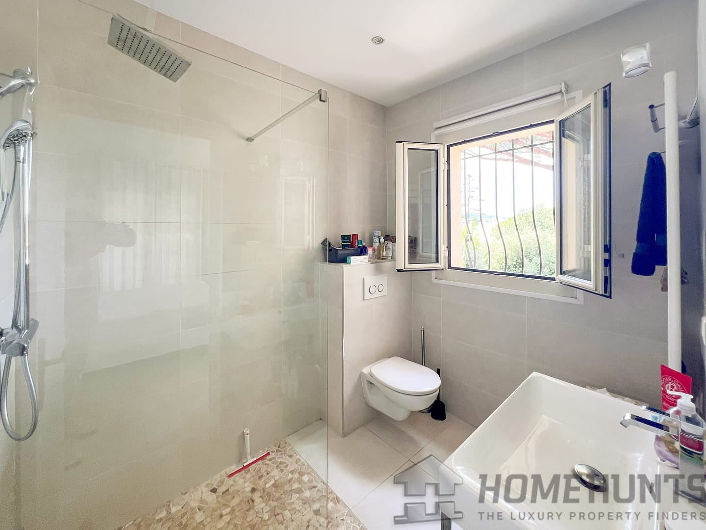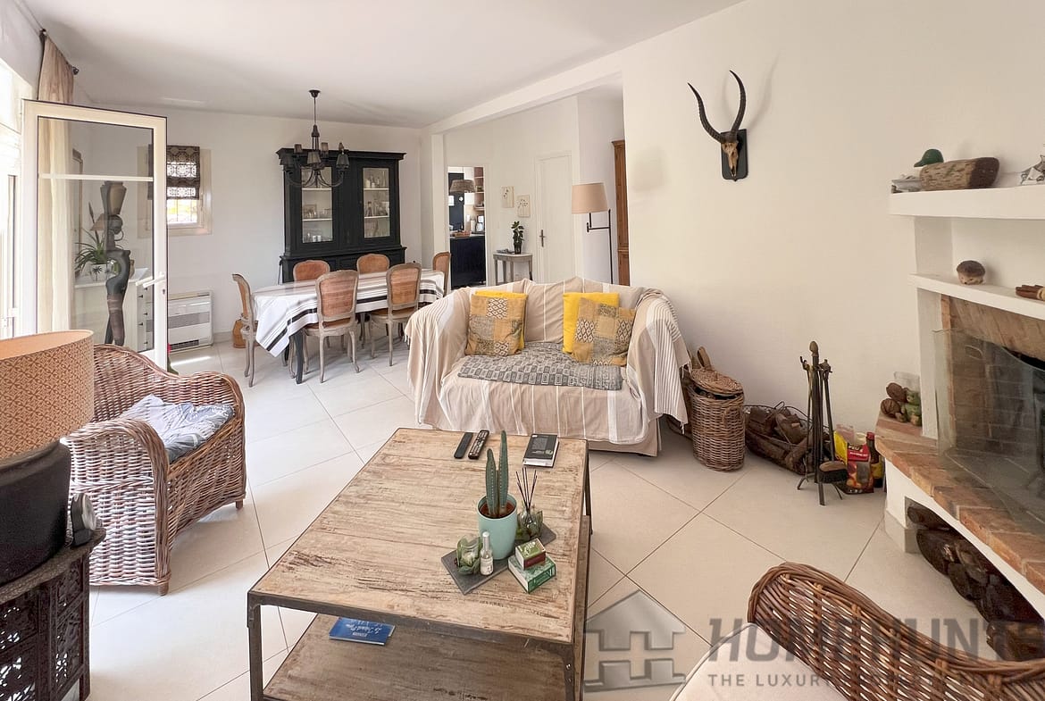 Beautiful features. Composed of an entrance hall, living/dining room with a fireplace opening onto a beautiful covered terrace, separate fully equipped kitchen, pantry/laundry room, 2 master suites with their shower room, 2 bedrooms, shower room and toilet. Impeccable condition. Attic space internally converted into additional sleeping space. Beautiful landscaped garden.