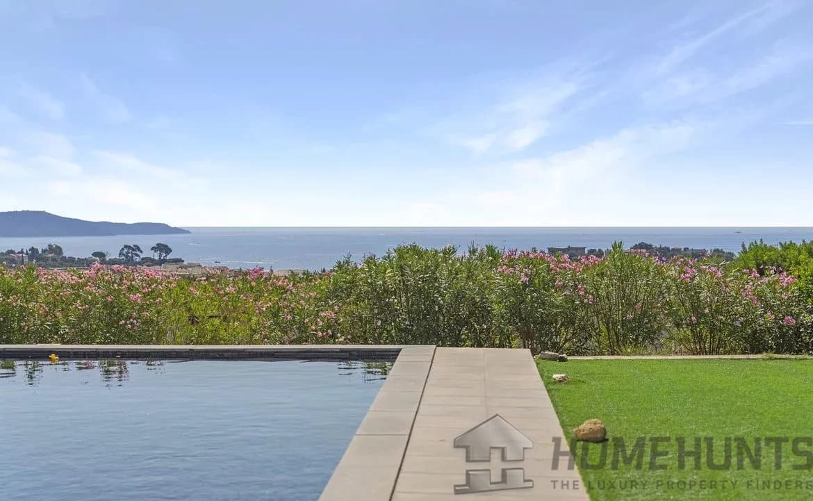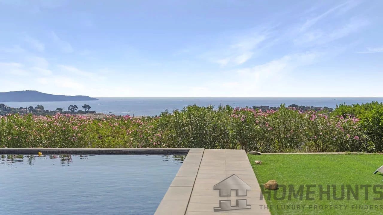 Just a few minutes from the beach, a beautiful renovated villa with a harmonious view of the sea and Cap Lardier, located in a peaceful and sought-after estate.