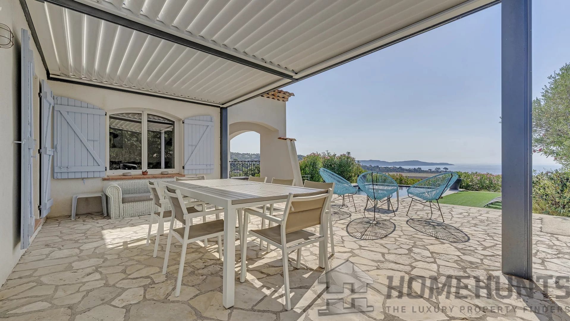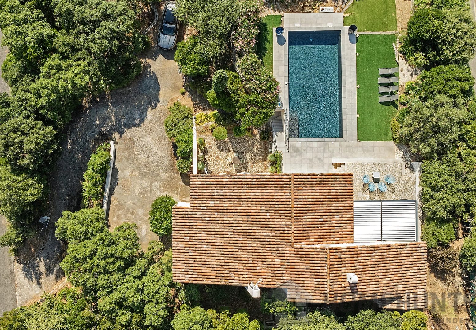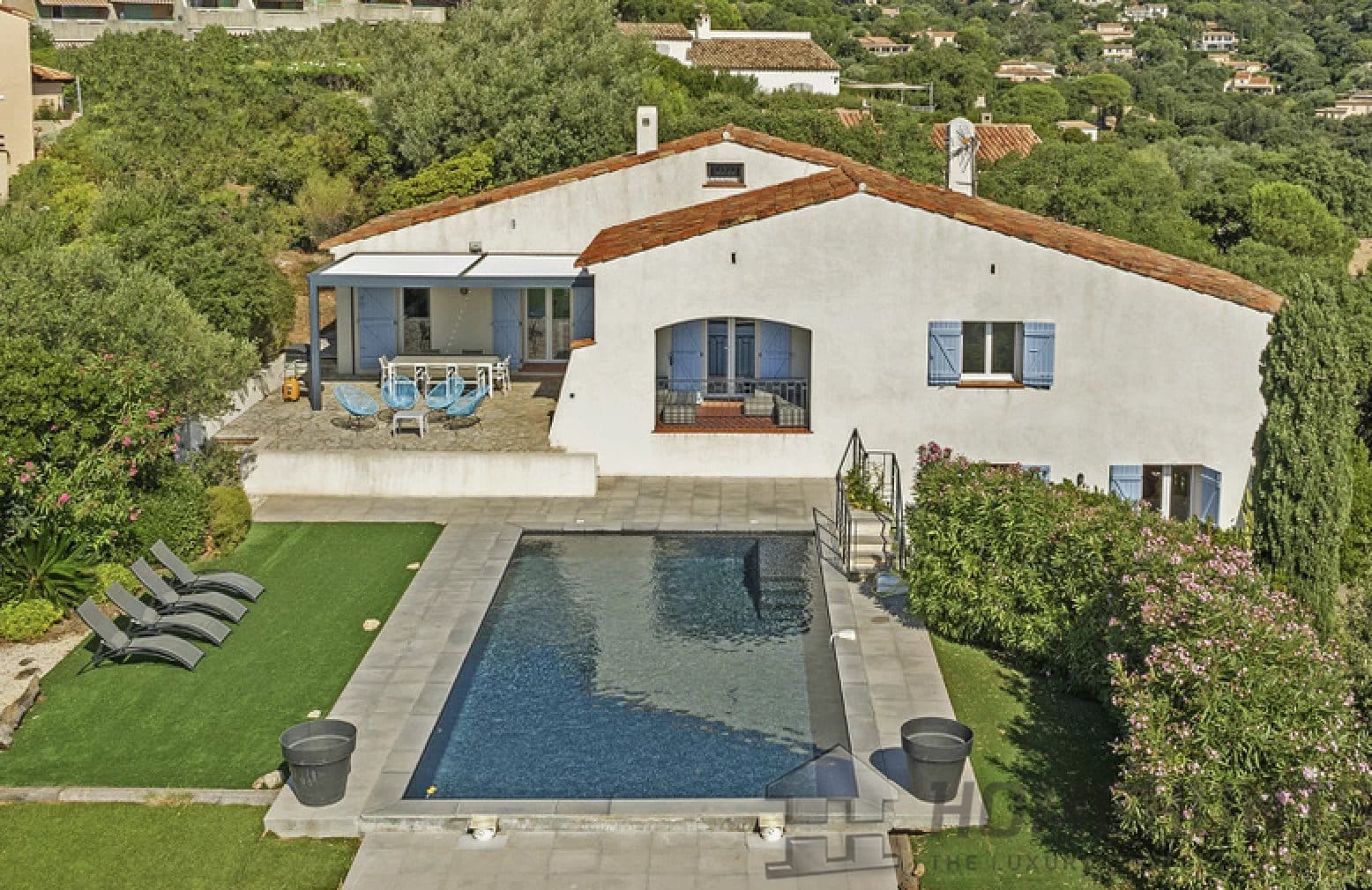The villa is set on a plot of over 1,600 m2, with a welcoming swimming pool at the heart of a flat, beautifully landscaped garden.