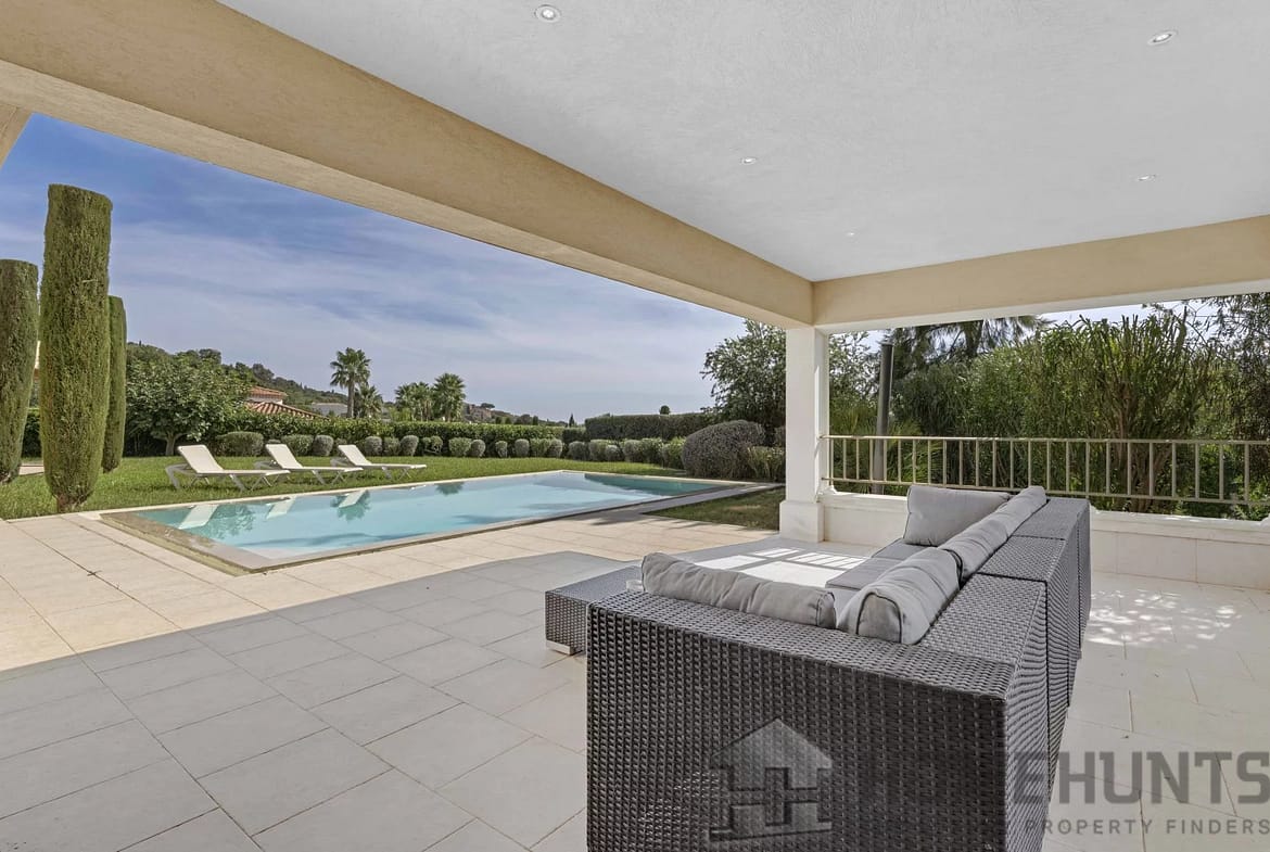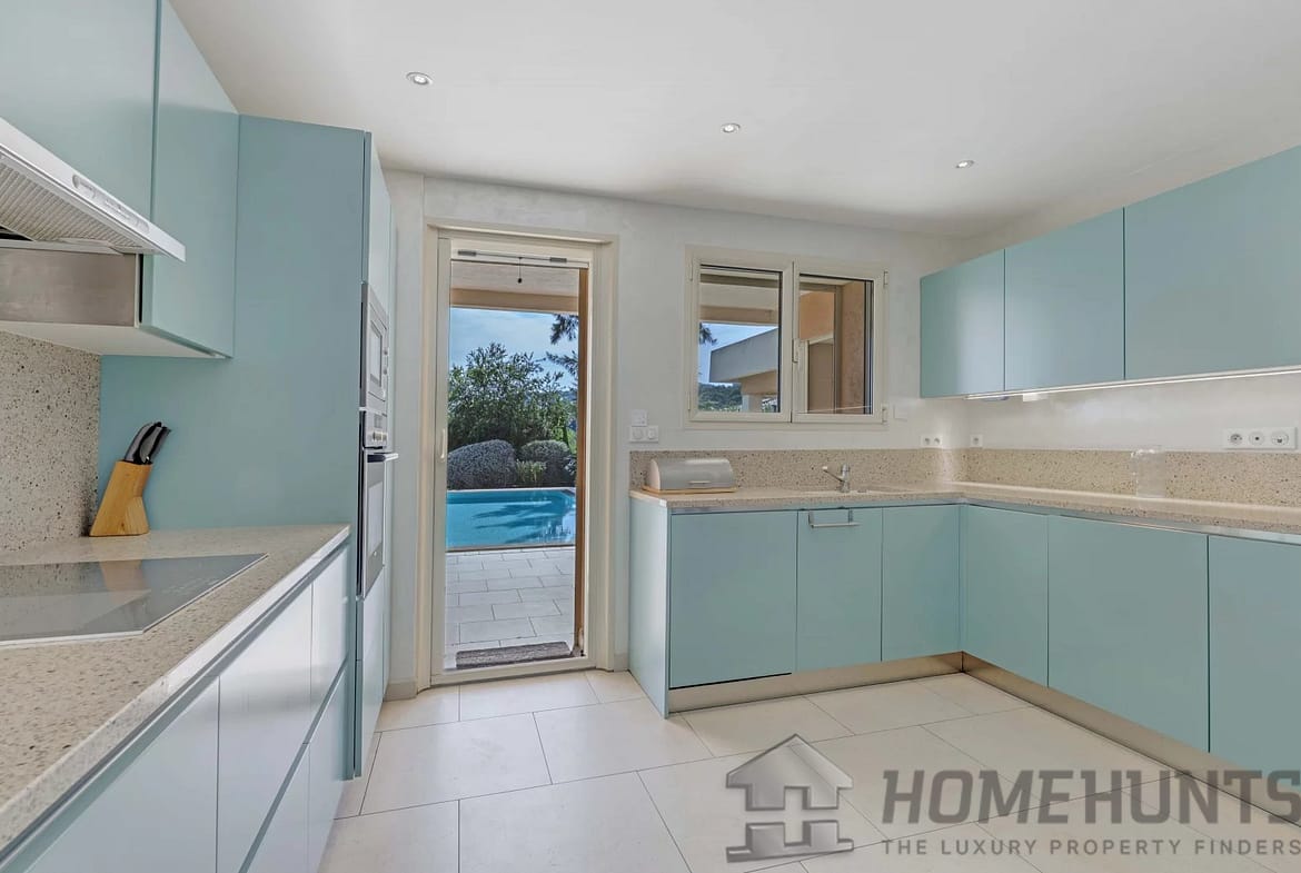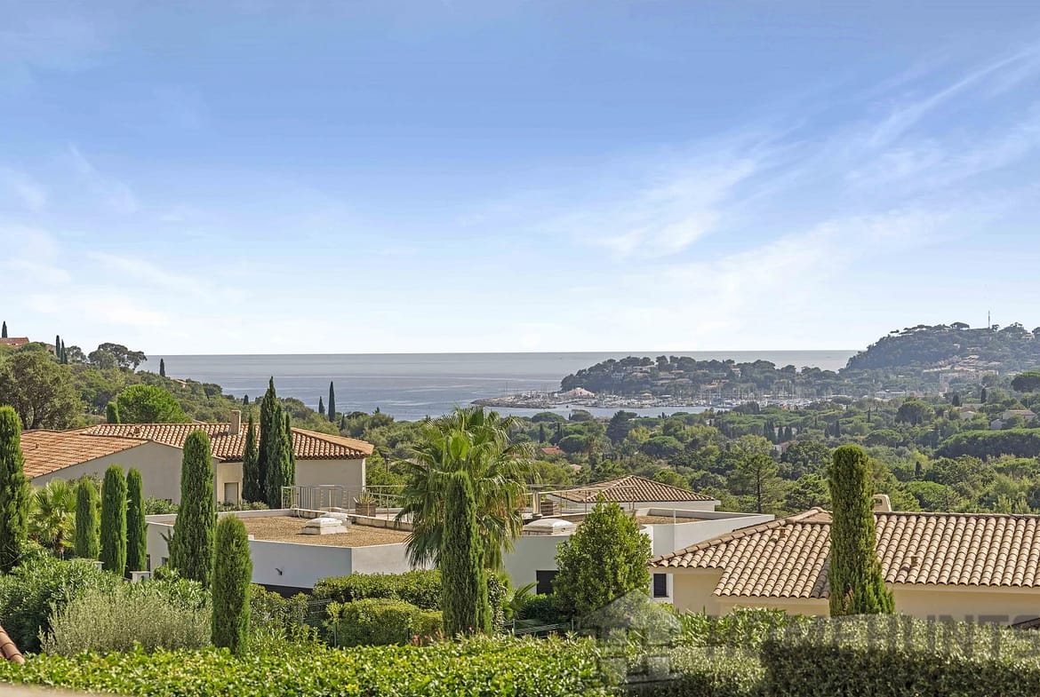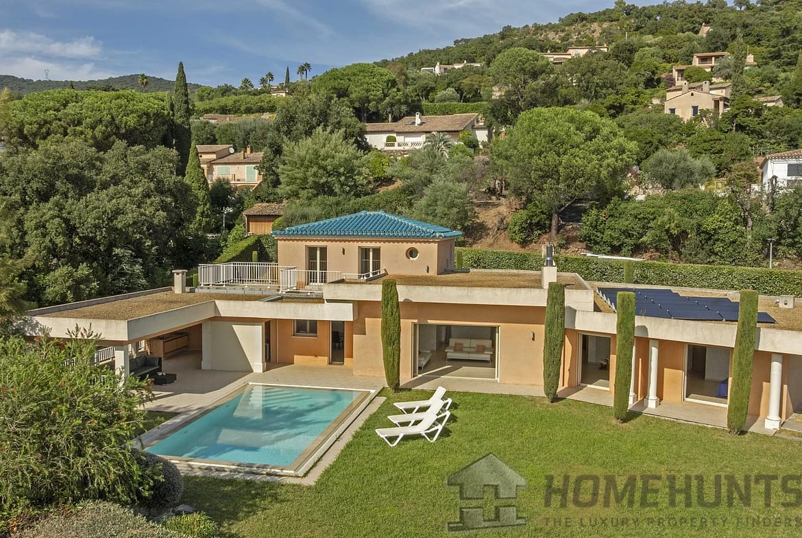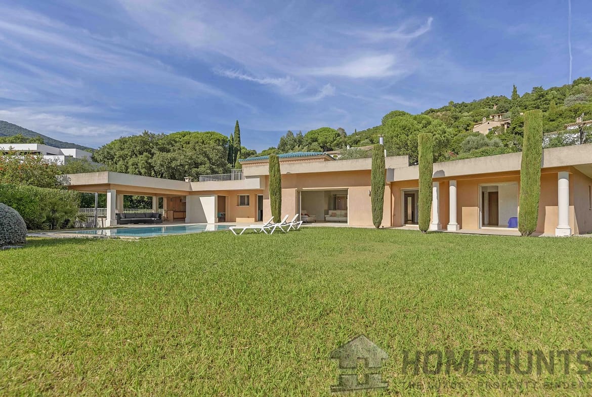 Nestled in a peaceful and privileged environment in Cavalaire-sur-Mer, within a secure and gated estate close to the beach, this south-west facing architect-designed villa combines elegance, space, and light, with beautiful open views and glimpses of the Mediterranean.