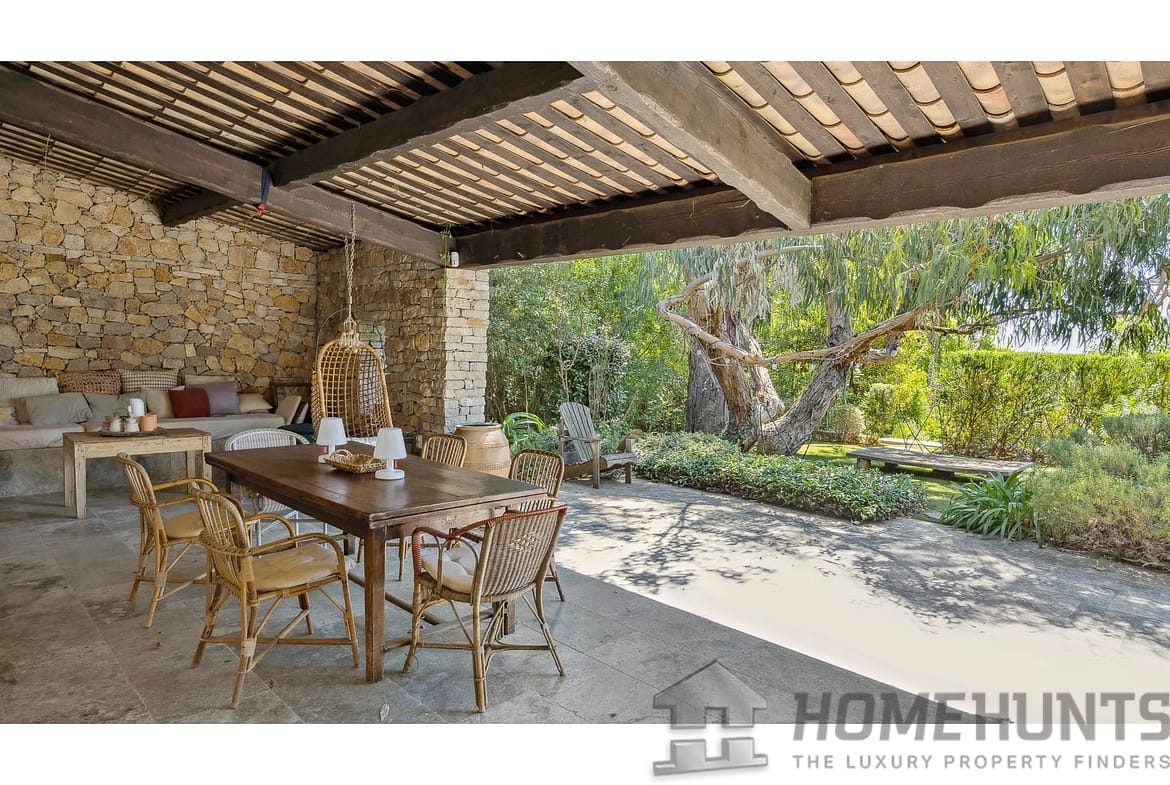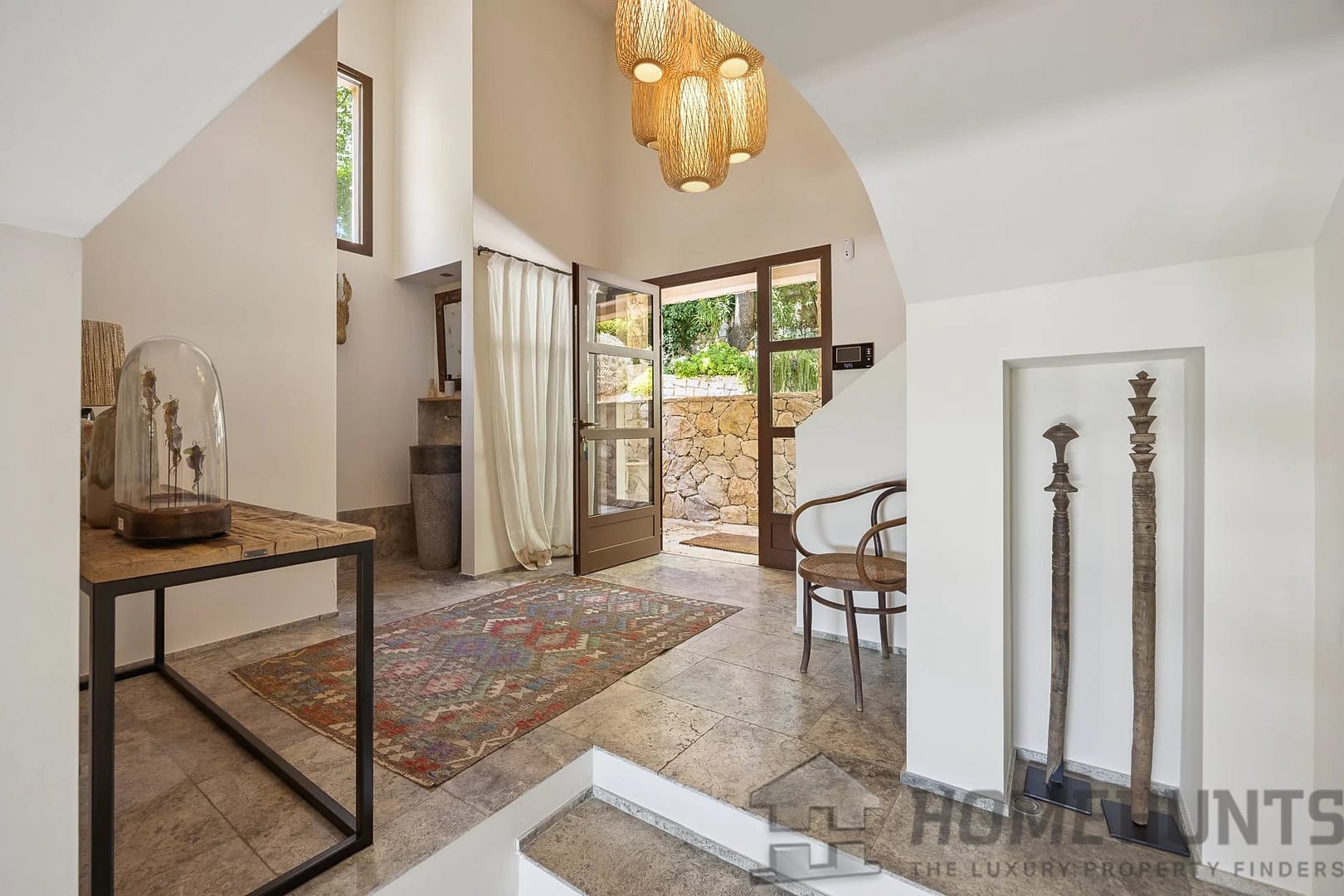 The pool area is surrounded by Mediterranean plants, creating a relaxing and natural atmosphere. To top it all off, the villa boasts a stunning panoramic view stretching all the way to the sea — a rare and precious asset.