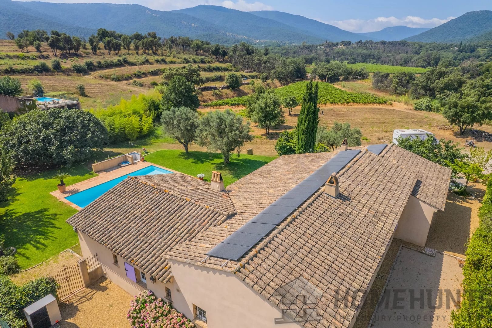 Very close to the village, in a quiet, sought-after area, beautiful 200 m2 Provencal villa built on one level on a 2300 m2 flat plot planted with fruit trees and bordered by vines.