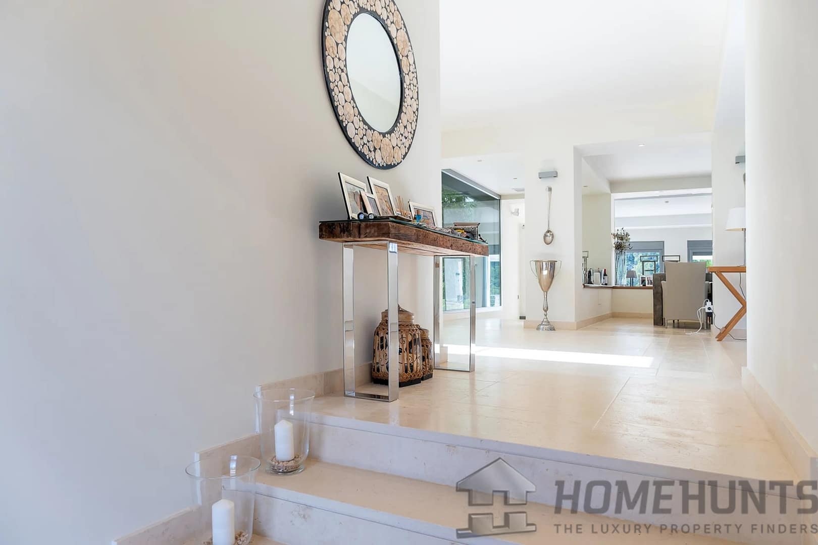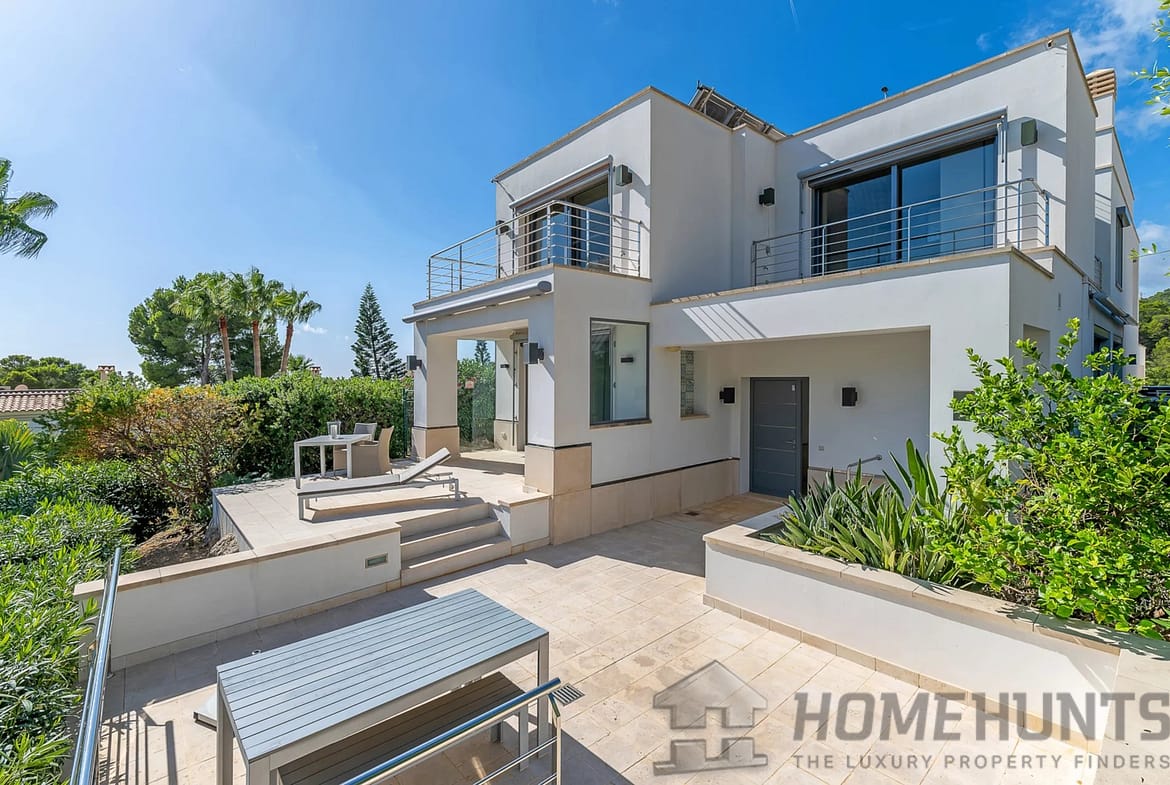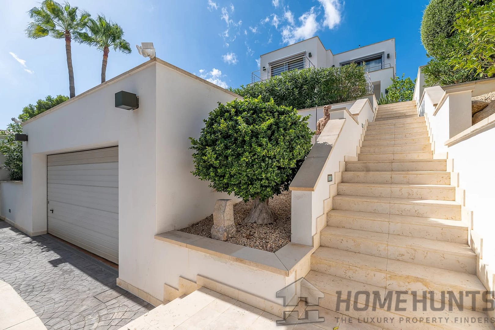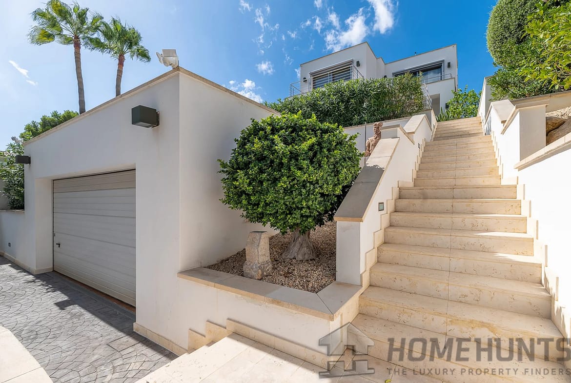 Below the swimming pool, there is an additional room with versatile potential that can be customised to suit your individual needs. With a double garage and a green area in front of the villa that provides privacy, this ideally located residence conveys the feeling of living in harmony with nature. At the same time, it is only a few minutes away from Palma de Mallorca and Puerto Portals.