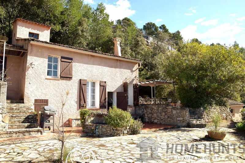 COTIGNAC. Very close to the village centre, nestled on a plot of 2,314 m2 with panoramic views, a residential property is offered for sale consisting of two houses, some small stone shelters and a superb swimming pool.