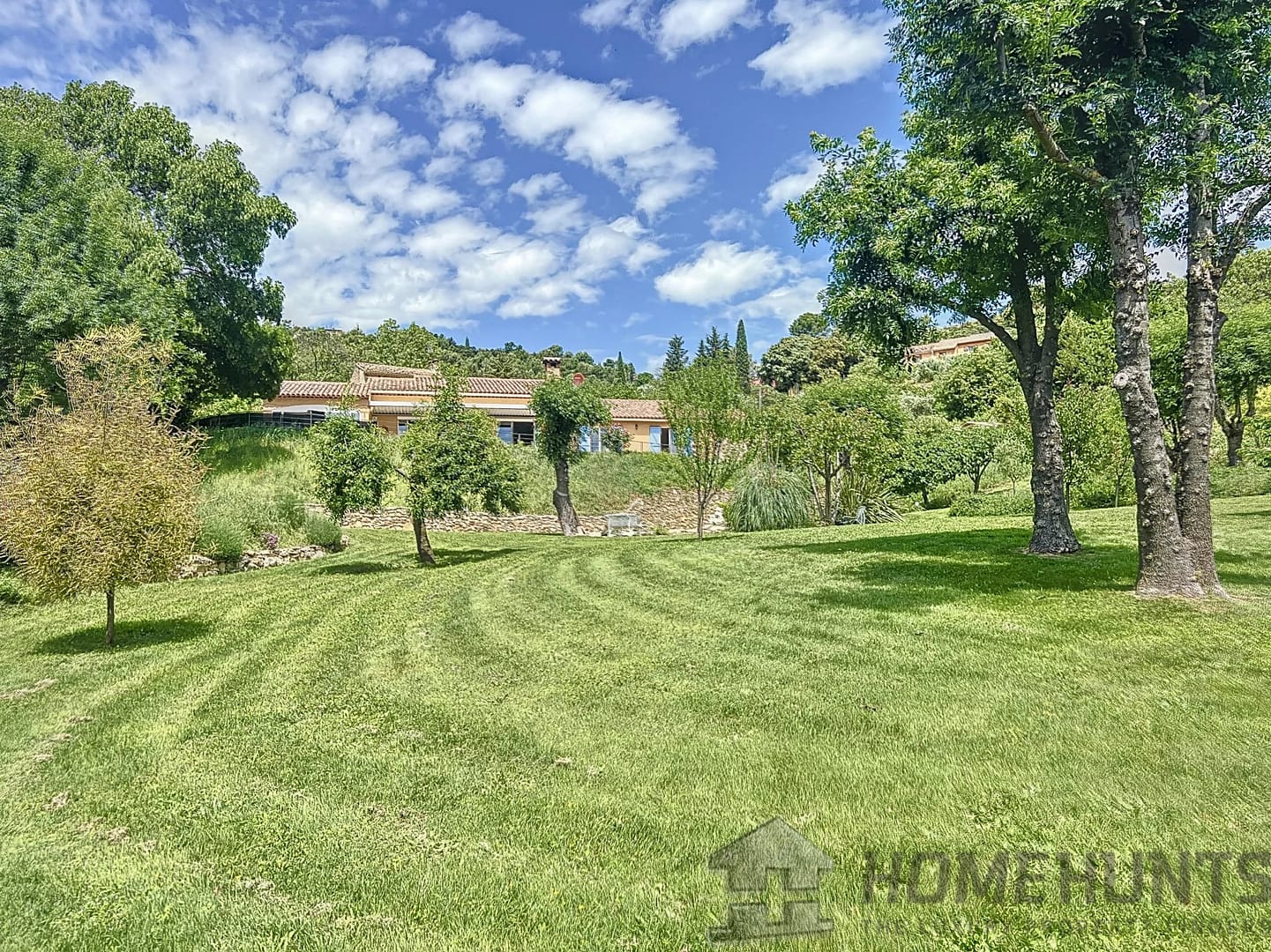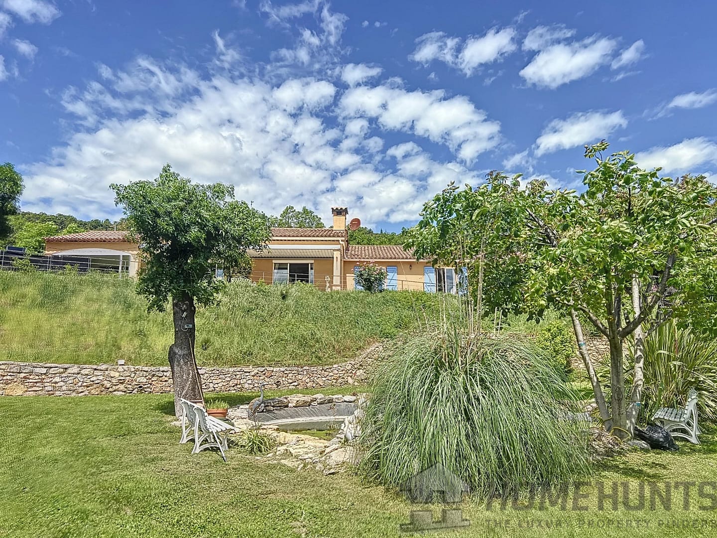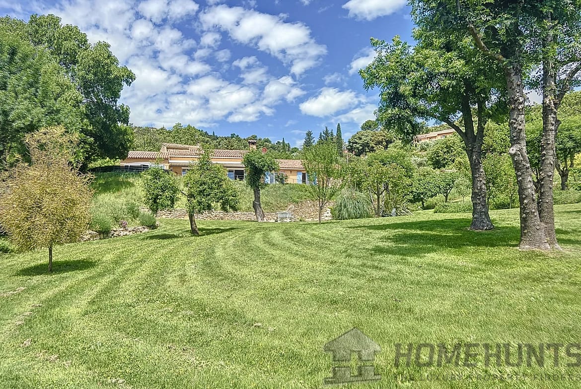 Nestled on the heart of a magnificent 7500 m2 garden on the edge of a river and waterfall, walking distance from the centre of the village while in a very quiet area, benefiting from a panoramic view on the surrounding hills.