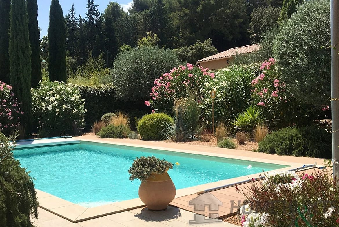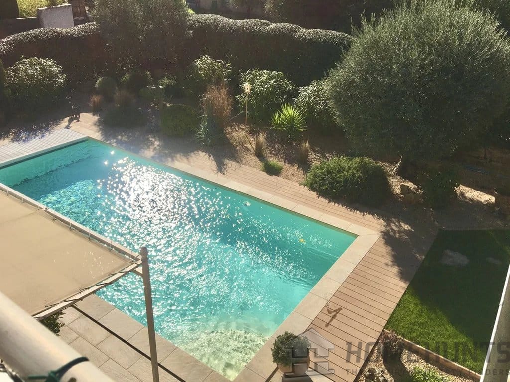 The 32m2 swimming pool is salt-treated and equipped with a heat pump. It is secured by an integrated electric roller shutter. Nearby, there is an outdoor solar shower and a 15m2 pool house with a guest room, separate toilet, and technical room for the pool.