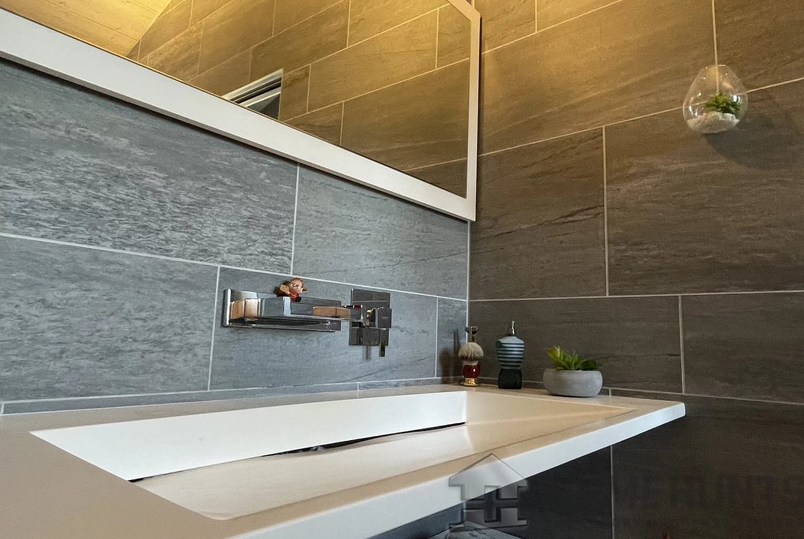 The Pantry with a work surface, double sink, refrigerator, and Laundry area with a washing/drying column, offers ample storage space for optimal organization. This highly functional room allows communication between the Garage and the Living Area. A technical room houses the heating heat pump and the thermodynamic hot water tank.