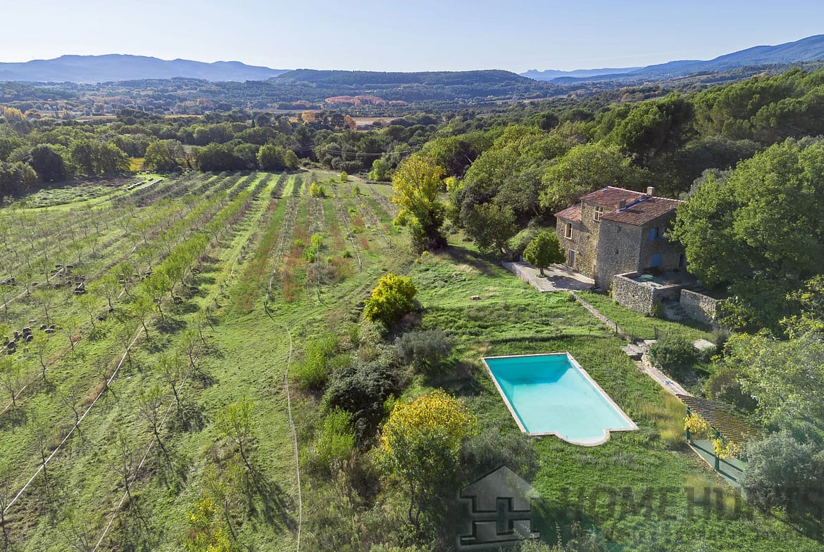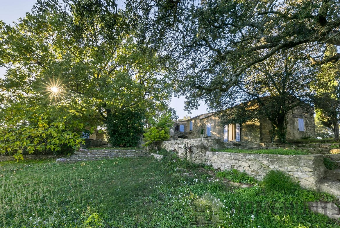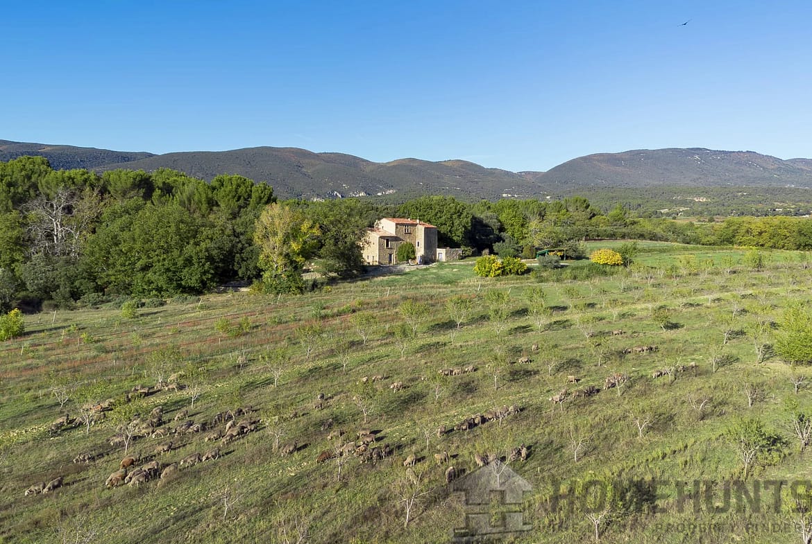 The grounds include lawns surrounding the houses, garrigue scrubland, woods, olive trees, oaks, pines, and more.