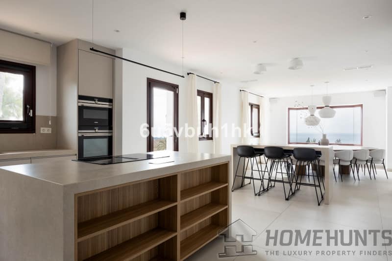 At the heart of the villa lies a kitchen by Porcelanosa, its open-plan layout flowing naturally into a breakfast nook and dining area. Both functional and inviting, it is conceived as a stage for culinary creativity and convivial gatherings. Technical features, including full air conditioning and underfloor heating in six of the eight bathrooms, ensure comfort throughout, with thoughtful exceptions in the external cabana shower, the entrance hall guest WC, and the newly added downstairs bathroom.