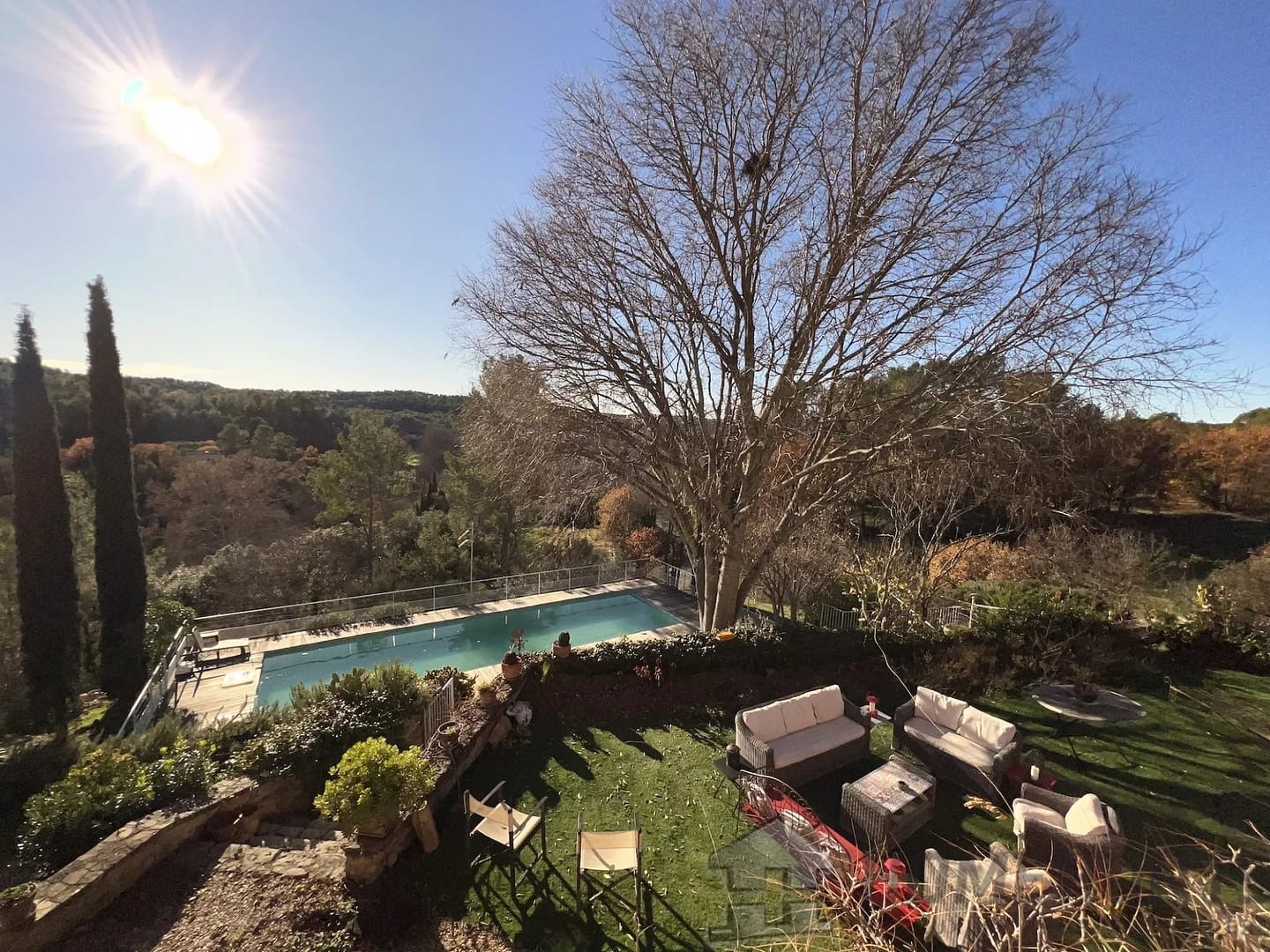 A covered terrace borders the 1930’s bastide, the swimming pool (14x5m) is placed below on a terrace facing a splendid view.