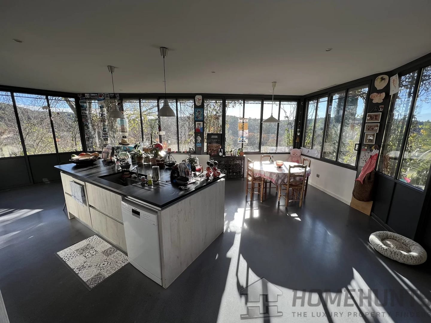 The bastide is composed by three floors; on the ground floor, a living room with its fireplace, a master suite, an air-conditioned and equipped kitchen fitted out in the extension dating from 2016, the boiler room, a separate toilet and a laundry room.