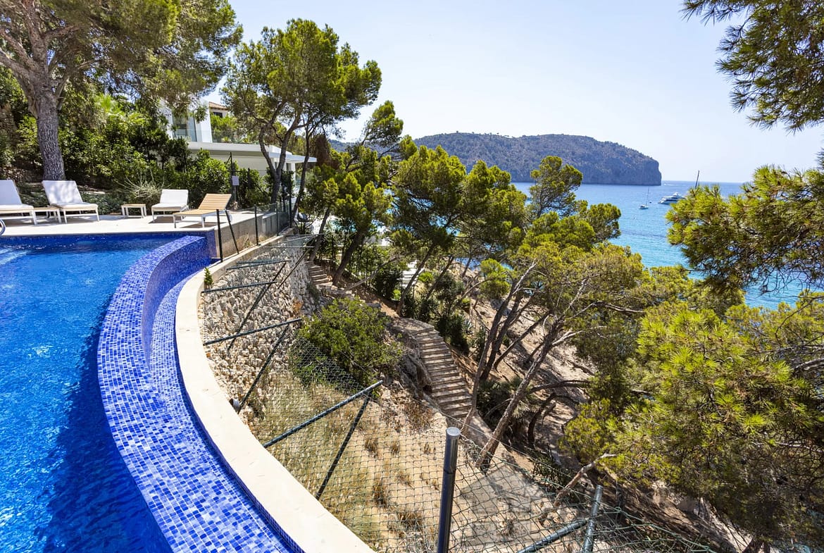This exclusive seafront villa in Camp de Mar, Majorca, offers unrivalled panoramic views of the Mediterranean Sea and direct access to the sea from the property.