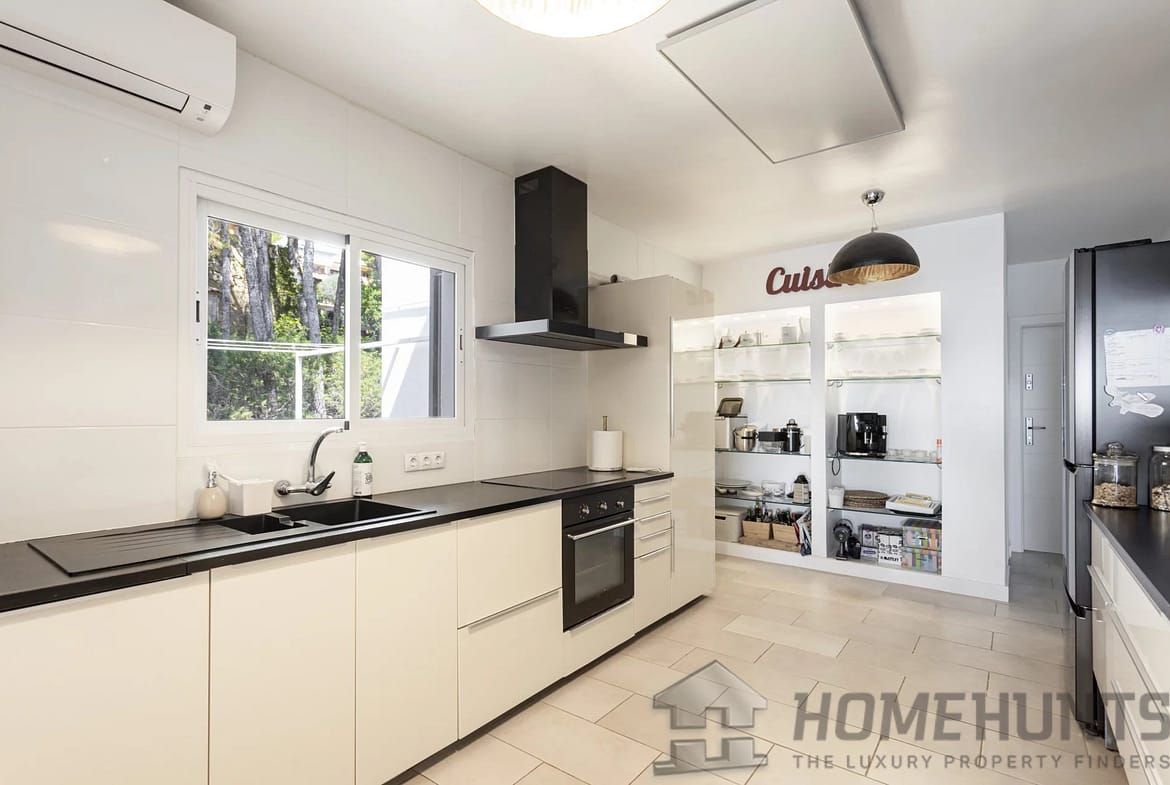 With a constructed area of 431 m2 and set on a spacious plot of 1864 m2, the villa has four bedrooms, three bathrooms and a garage for two cars.