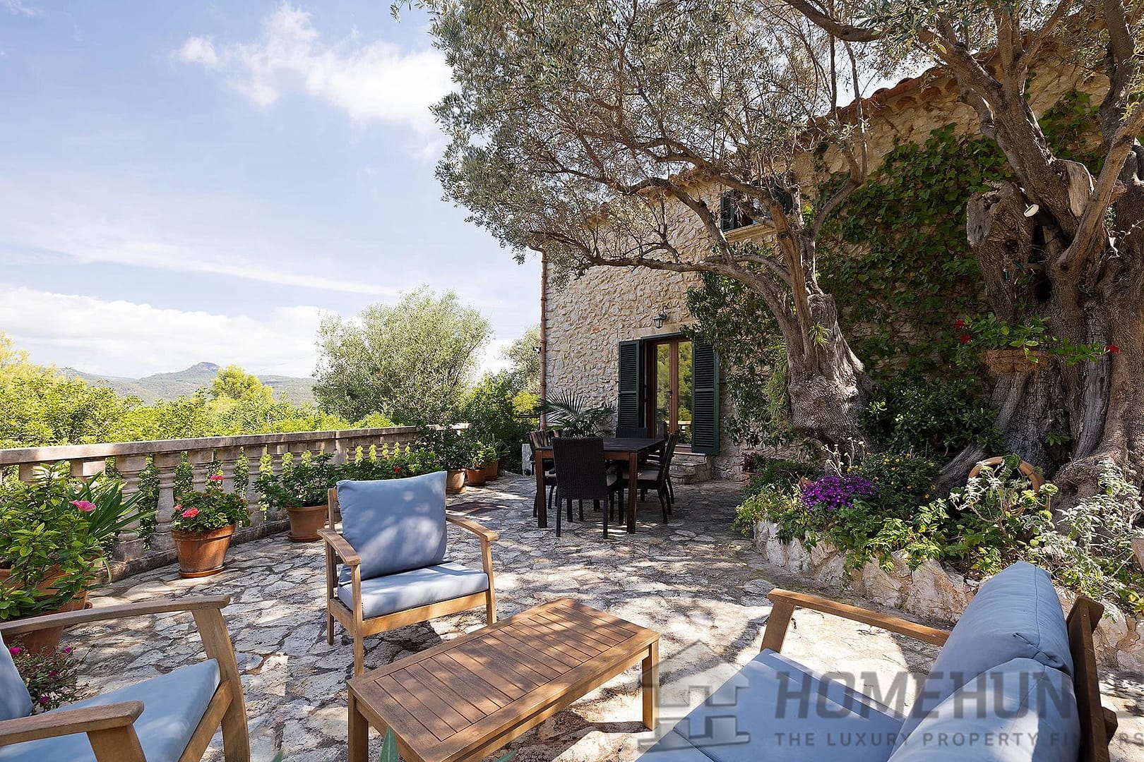 Outside, the finca displays all its Mediterranean appeal: gardens with olive and almond trees, large sunny terraces and a private swimming pool surrounded by nature. The perfect place to relax and enjoy the mild climate of Mallorca all year round.