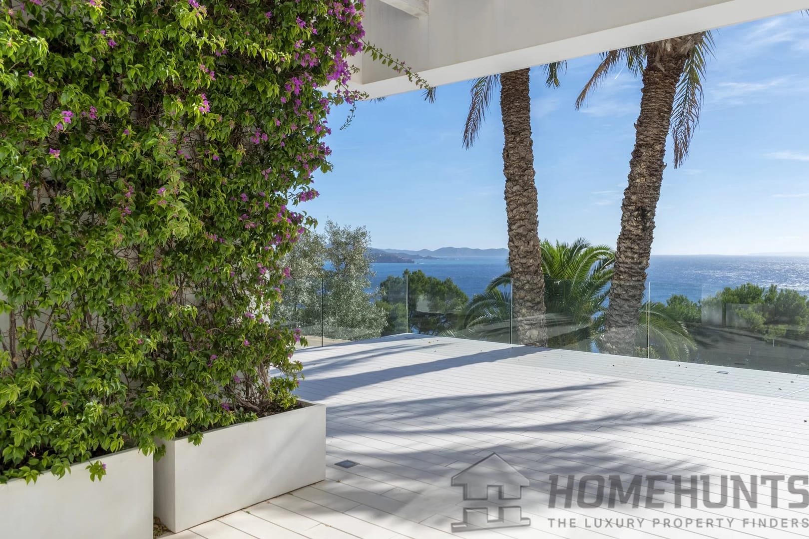Spread across two levels, the upper floor hosts a grand master suite with a luxurious en-suite bathroom and four additional bedrooms, each with its own full bathroom. Expansive terraces and manicured gardens provide breathtaking views over the sparkling Mediterranean Sea.