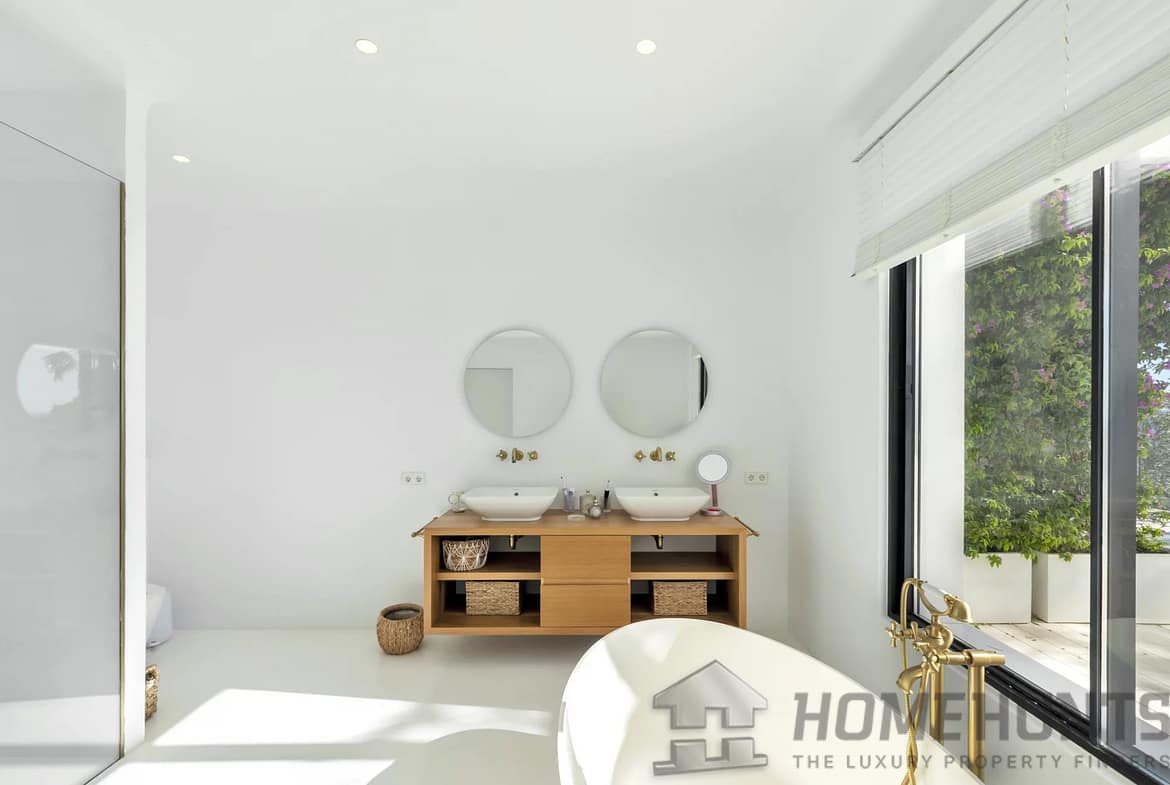 Completely renovated in 2017, the villa has been transformed to the highest standards of modern luxury while maintaining a warm Mediterranean charm through elegant minimalist interiors and natural materials.