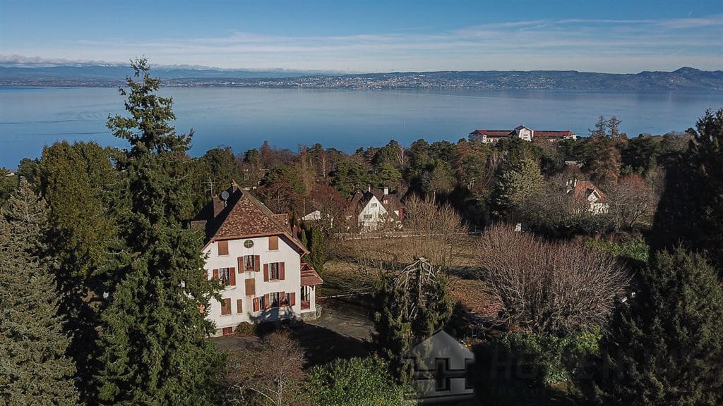 This prestigious manor house is ideally located and offers an exceptional living environment, with multiple balconies and windows opening onto beautiful panoramas of Leman lake and the Swiss bank.