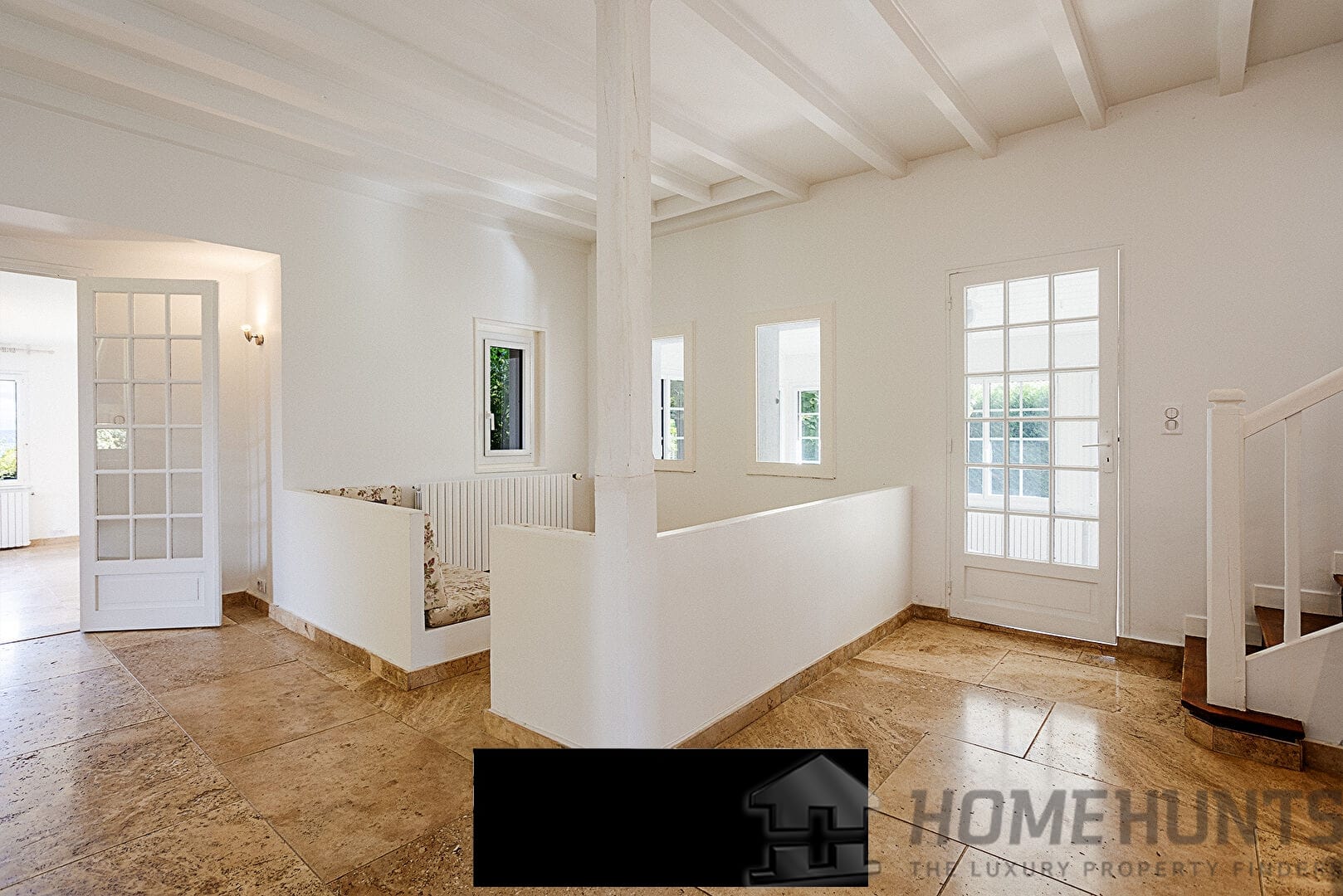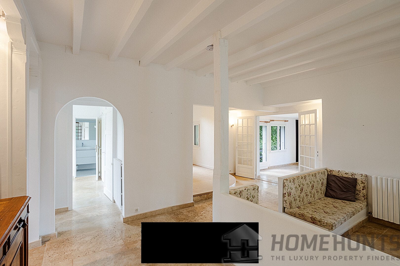 Behind its half-timbered facade and wooden shutters, the interior unfolds over two levels. On the ground floor, a welcoming kitchen opens onto a southwest-facing terrace, perfect for extending meals outdoors. A spacious living room, punctuated by a wood-burning stove and opening onto the garden, creates a warm atmosphere. Travertine floors bring a natural and timeless elegance to the whole. A library corner and a games room complete the space, in addition to a first bedroom with its adjoining bathroom.