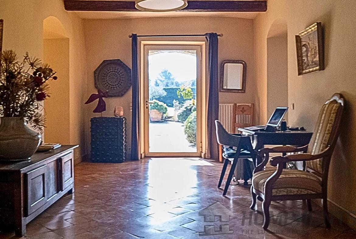 The property has equestrian facilities, including stables, a paddock and a field of olive trees that underline the authenticity of the setting.