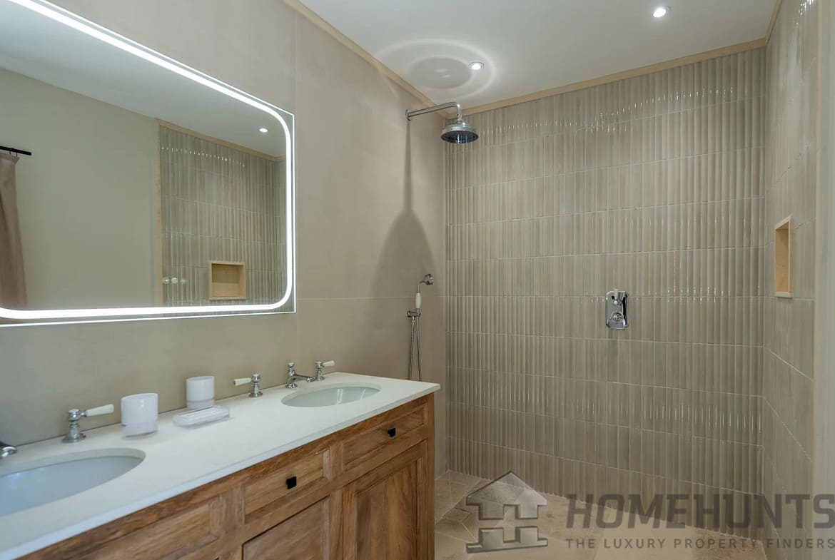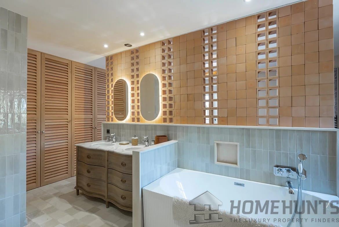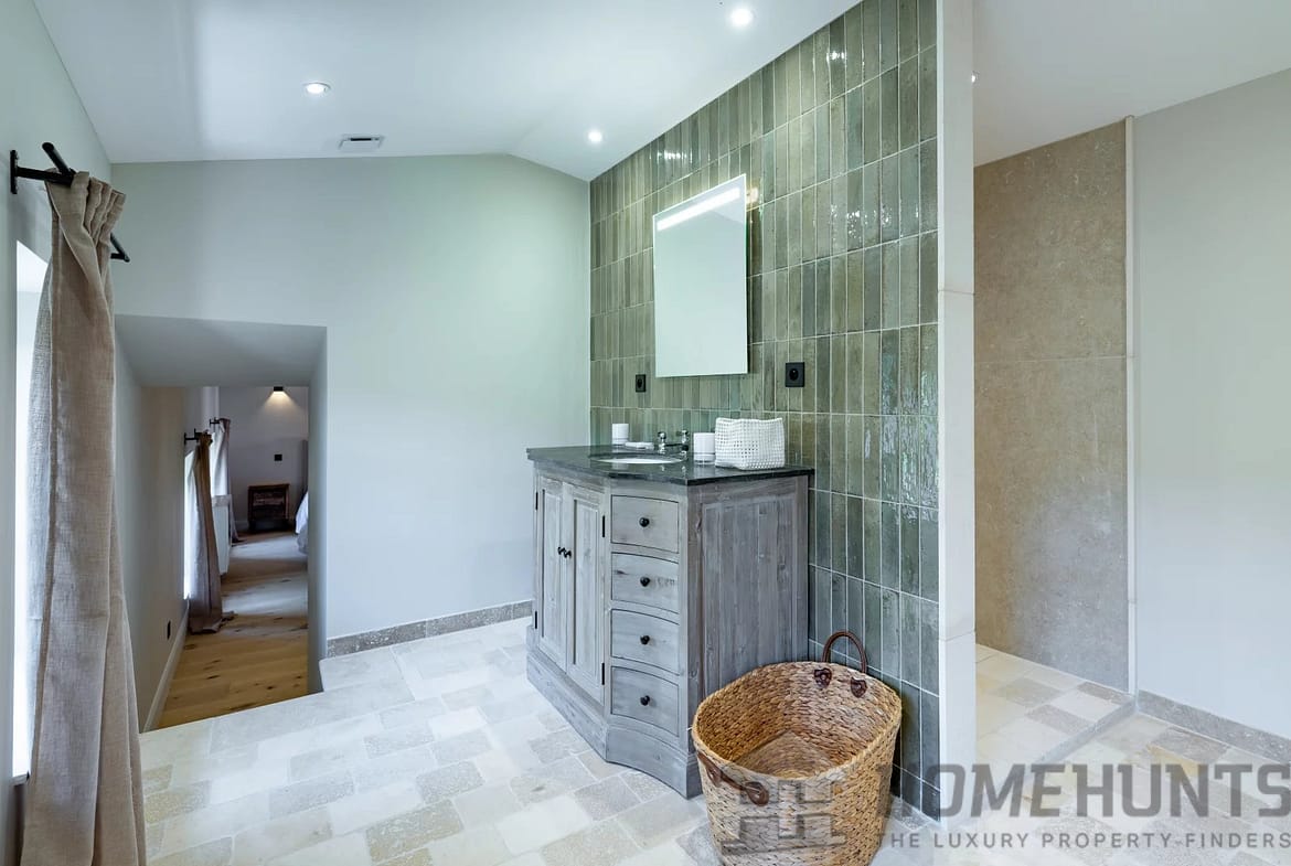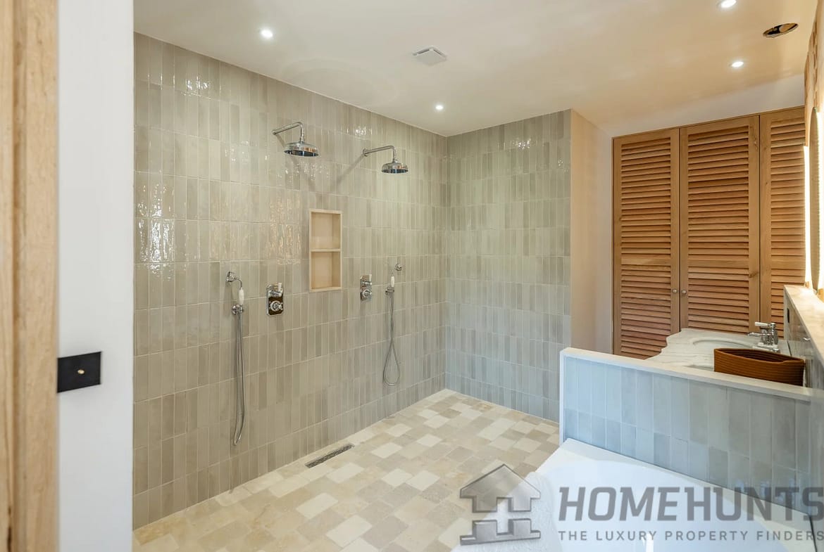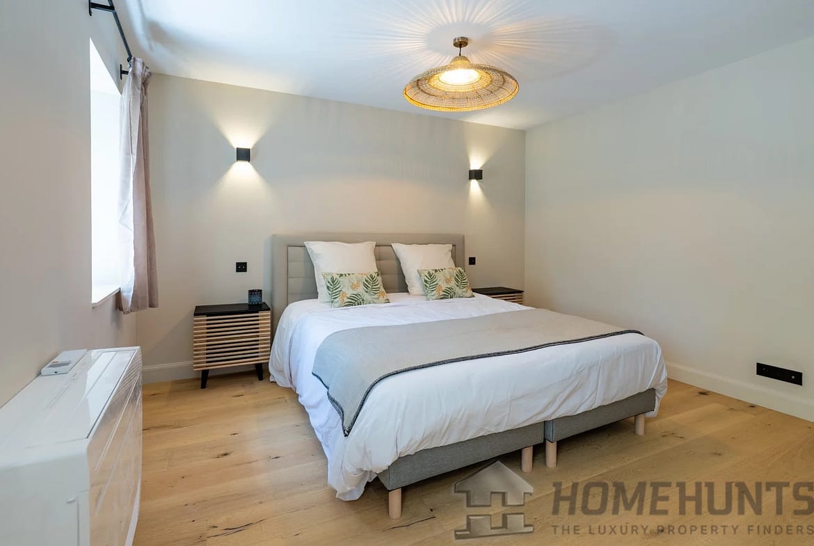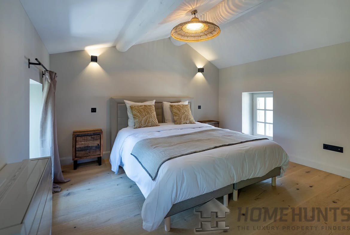 Spanning over 310 m2, the house opens onto a magnificent double-height living room with exposed beams, creating a grand yet inviting atmosphere. The spacious kitchen and dining area set the stage for convivial gatherings, while six en-suite bedrooms — including a ground-floor suite and an independent guest suite — offer privacy and comfort for family and friends.