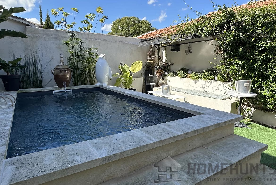 Outdoors, a secluded walled garden offers a haven of peace. The private pool and covered terrace invite you to enjoy sunny days and the gentle atmosphere of summer evenings.