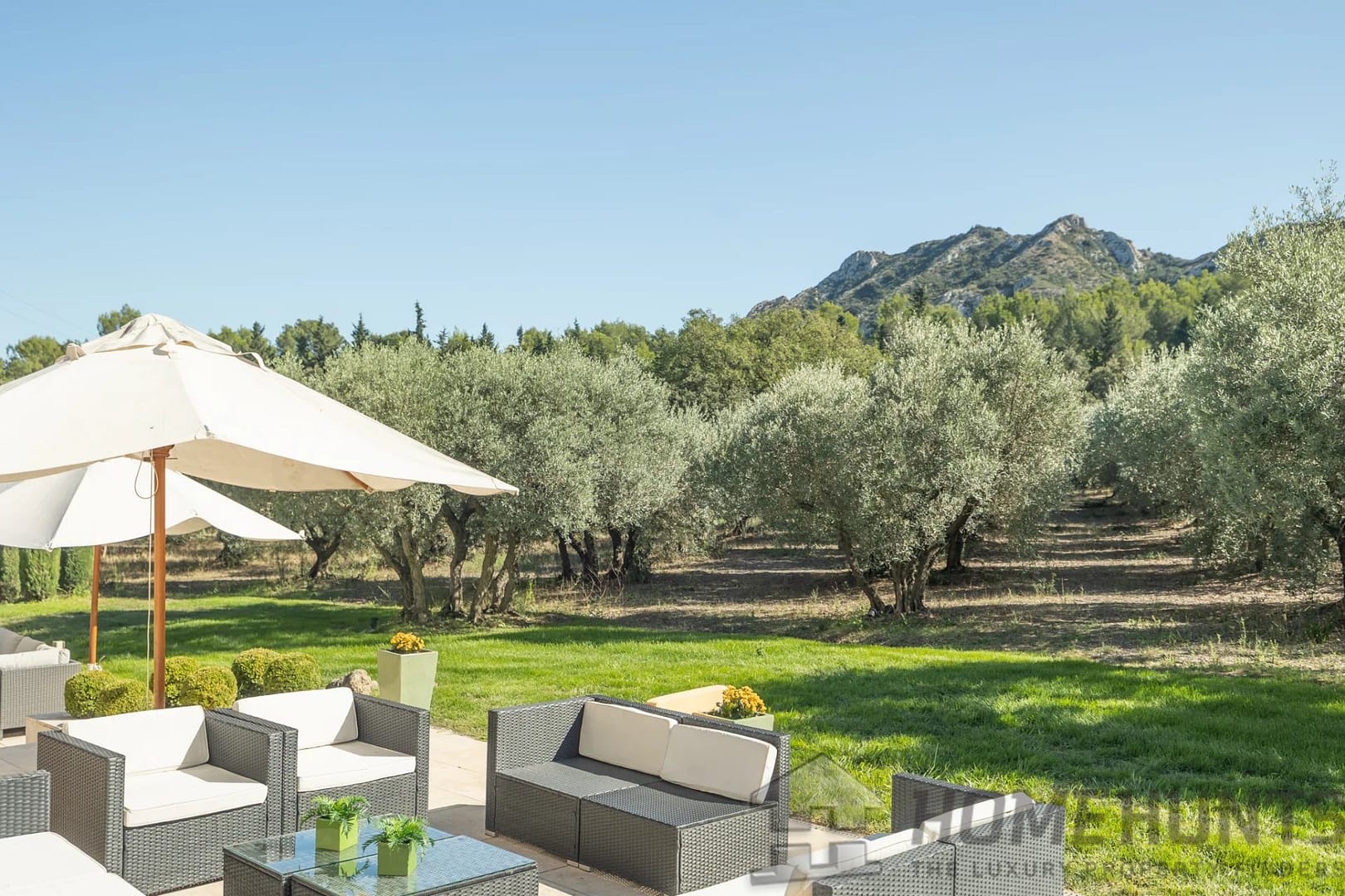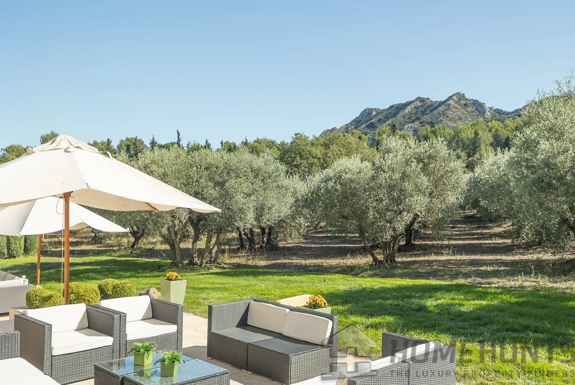 Every room in the house is bathed in natural light and opens onto a magnificent garden embellished with large stone terraces that offer breathtaking views of the enchanting Alpilles landscape. This outdoor area is perfect for relaxation and entertaining.