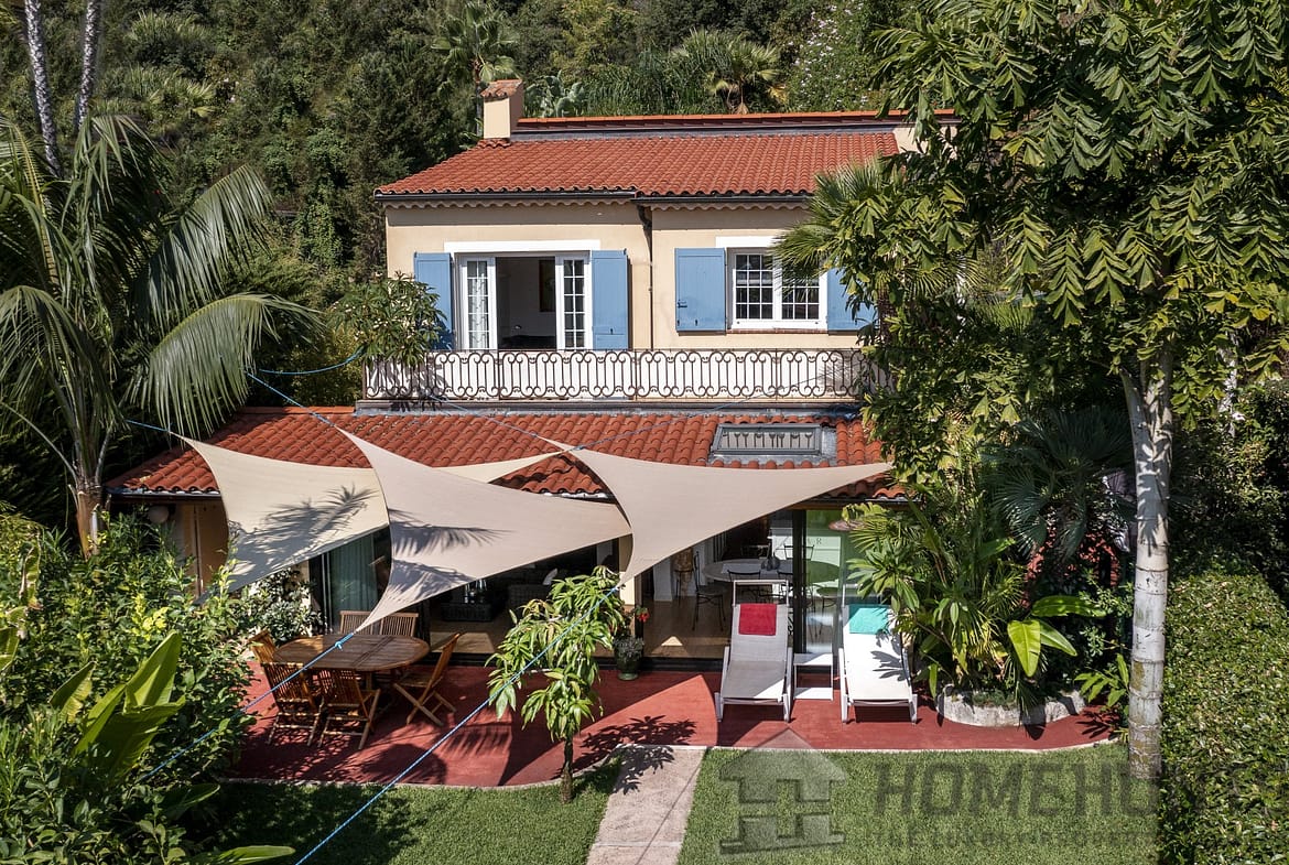 Eze bord de Mer, at a 5 minute walk to the beach, beautiful property built on a plot of 1475 m2, sheltered by a superb exotic garden abundant in tropical plants such as tree ferns, mango trees, banana trees, palm trees… In the bosom of this oasis a small heated swimming pool completes the outdoor space with a large pleasant summer kitchen.