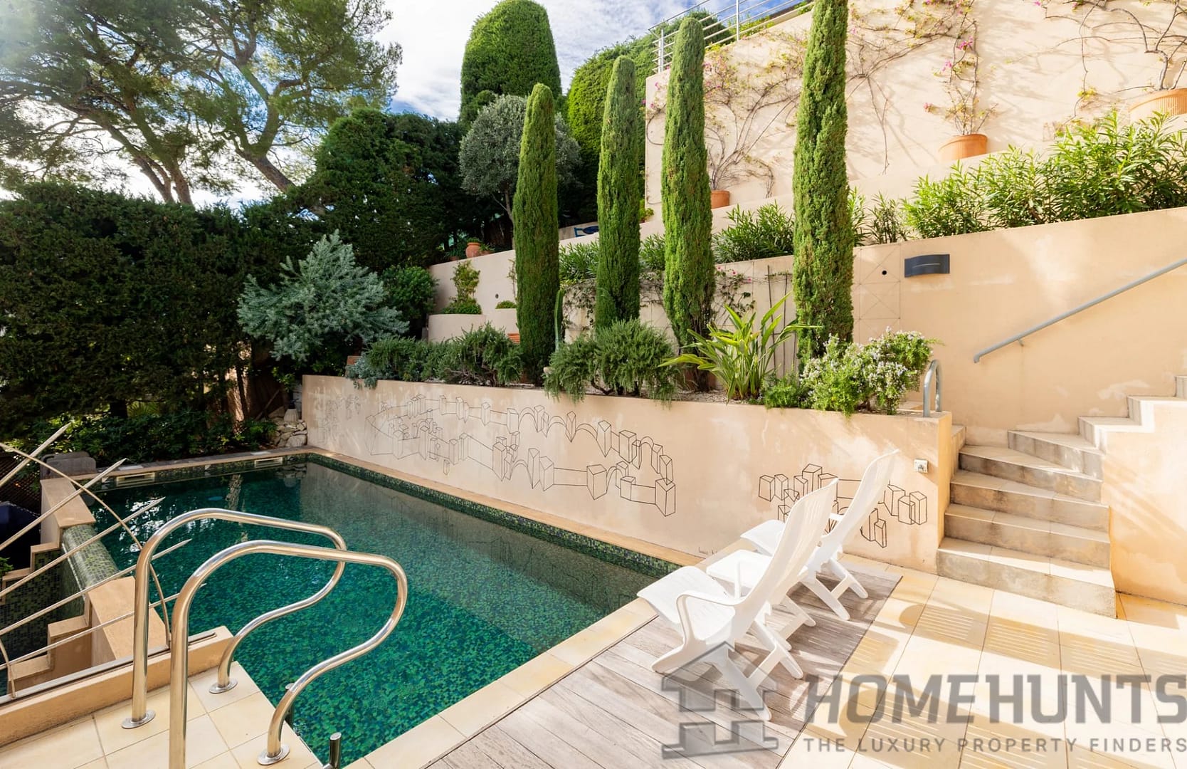 Above the beautifully landscaped pool area with an inviting swimming pool, a 22.73 m2 cellar.