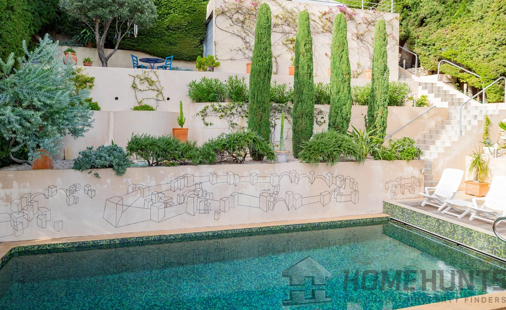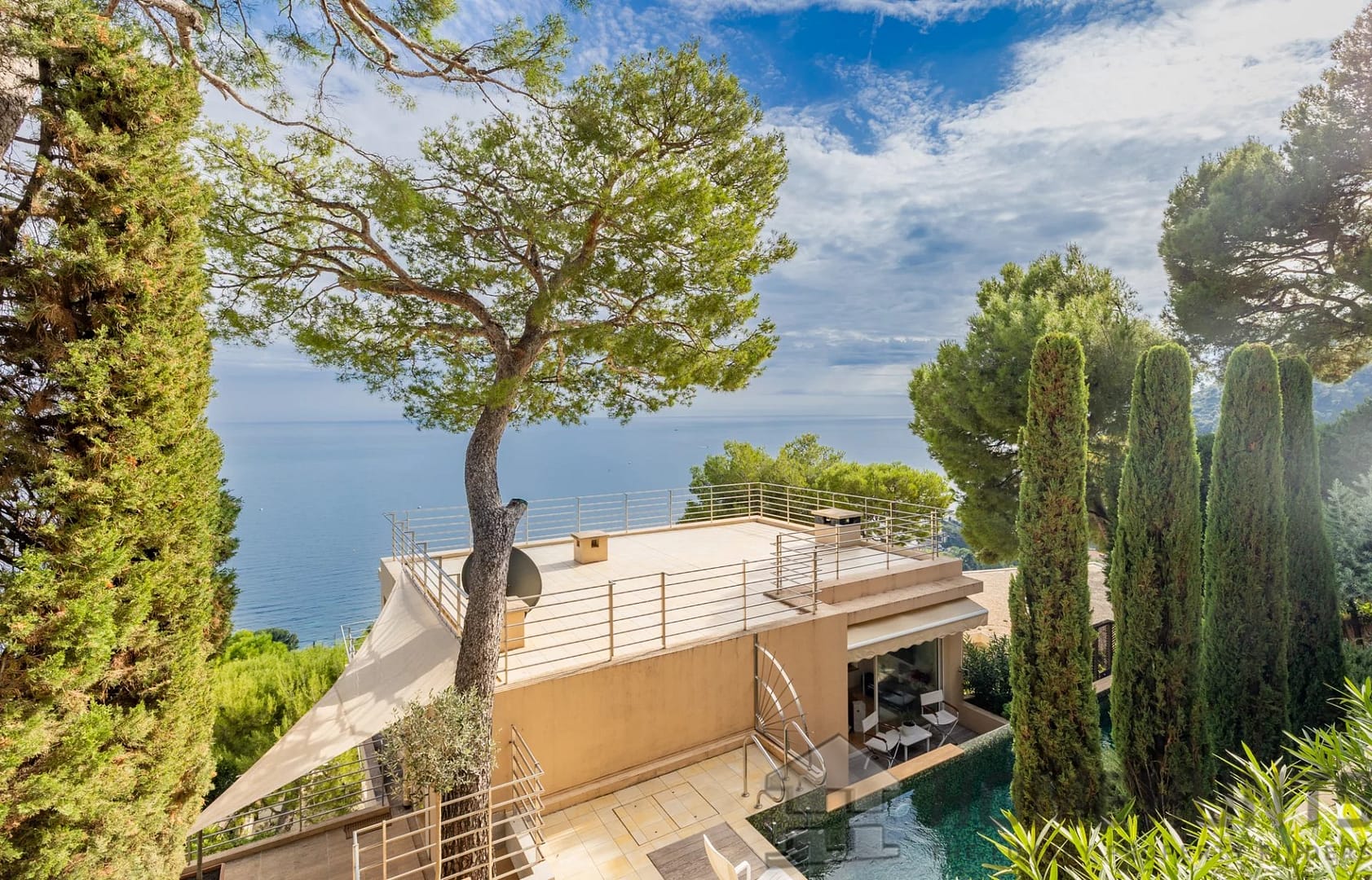 Eze bord de Mer, halfway up the hillside, contemporary house providing splendid sea views.