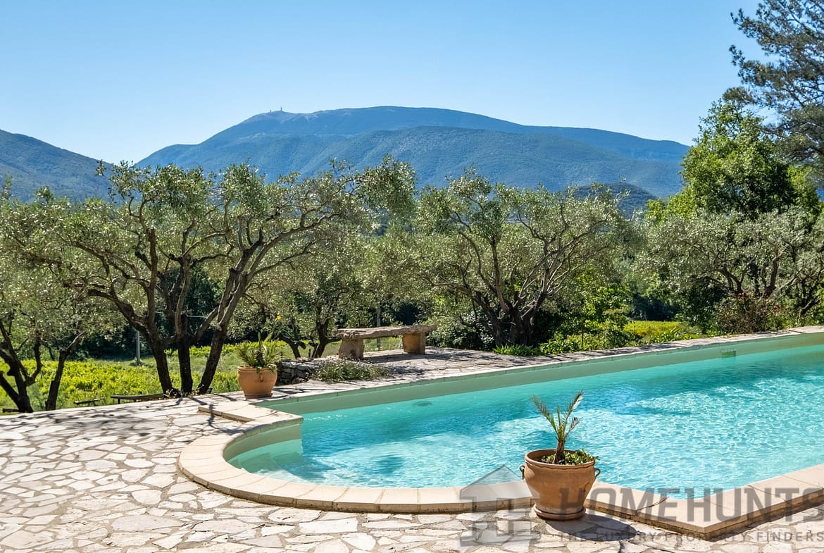 The grounds of almost 7,700 m2, beautifully planted, offer numerous relaxation areas, a beautiful swimming pool with panoramic views of Mont Ventoux, and an environment with no overlooked views.