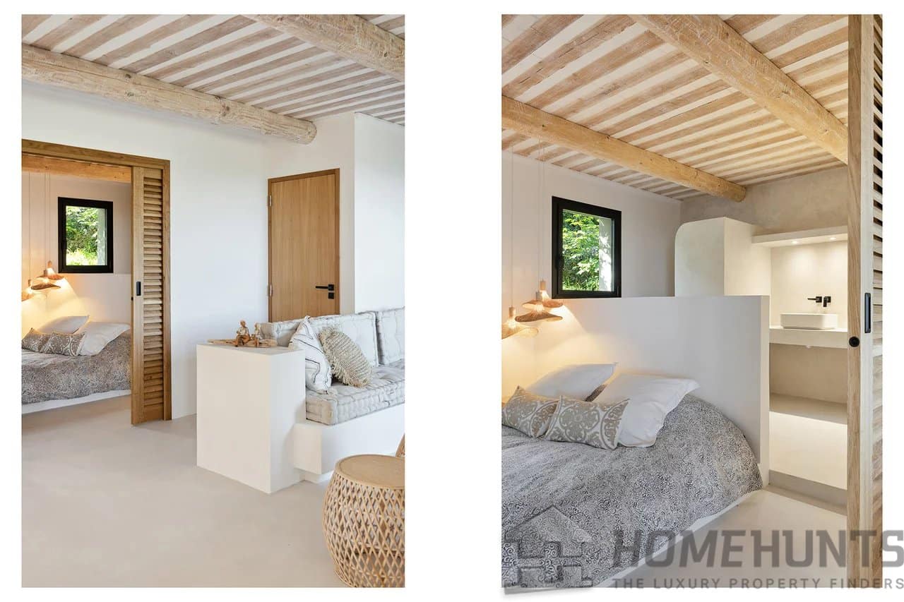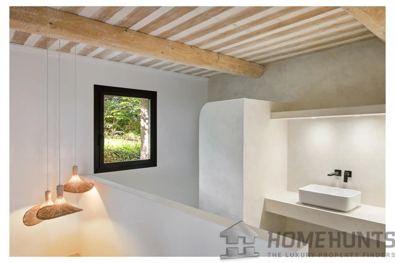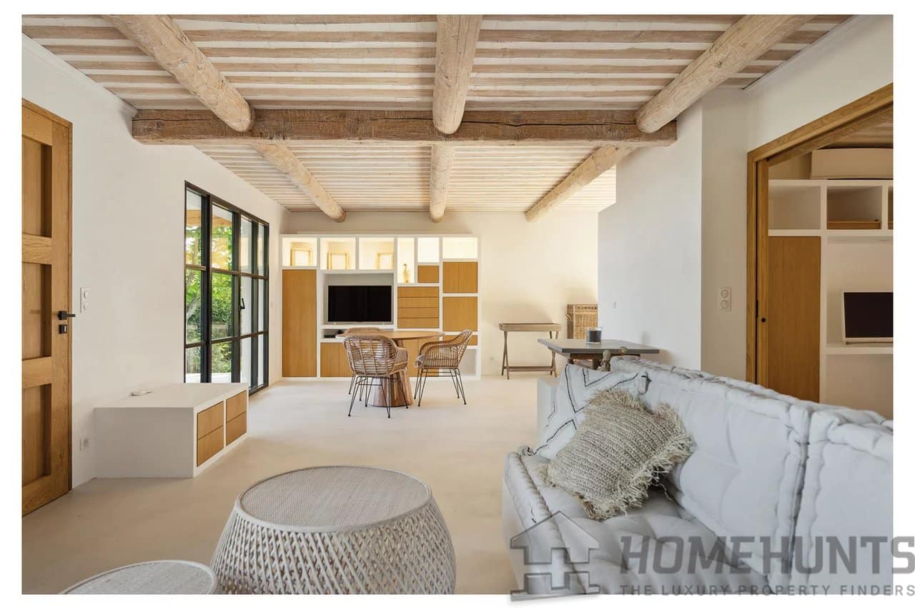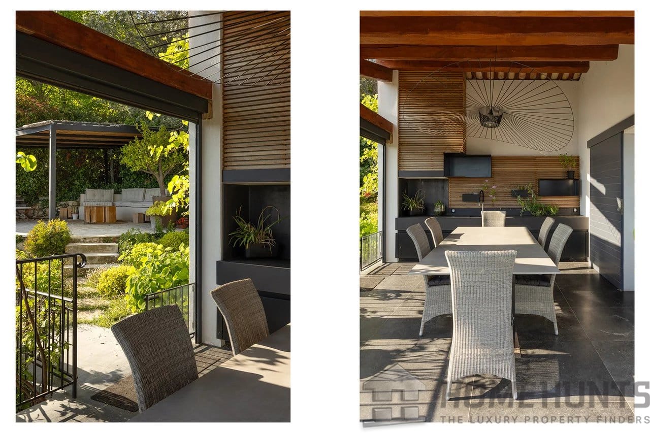 This ensemble comprises two fully renovated villas with noble materials and a certain refinement. The property spans over 6,500m2 of land, enhanced by a typically Provencal atmosphere with landscaped gardens and olive trees.