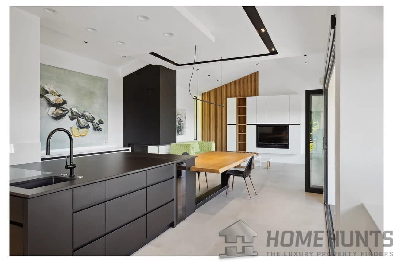 The ground floor features a pantry, wine cellar, and a 90m2 garage space that can accommodate up to 7 cars and can be transformed into a fitness area, spa, or home cinema according to your creative ideas.
