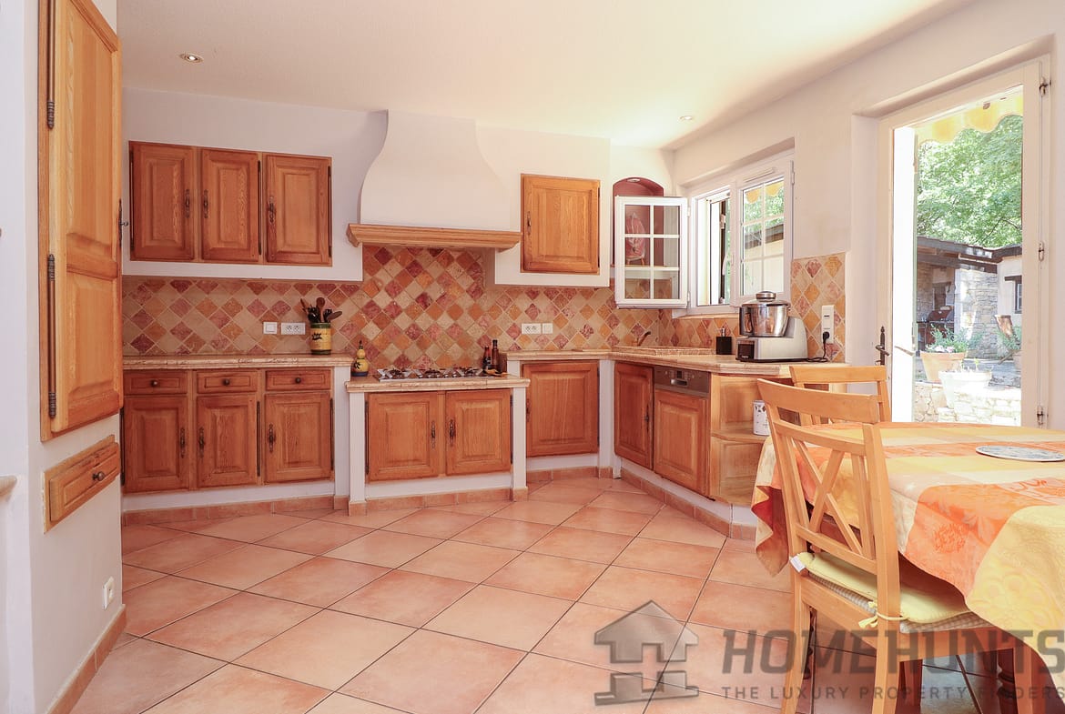 A gite on the ground floor comprising a kitchen, a bedroom and a bathroom. Double garage, carport and several outbuildings. Swimming pool with beautiful views from its terrace.