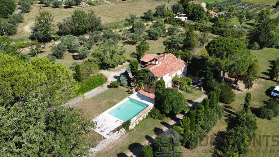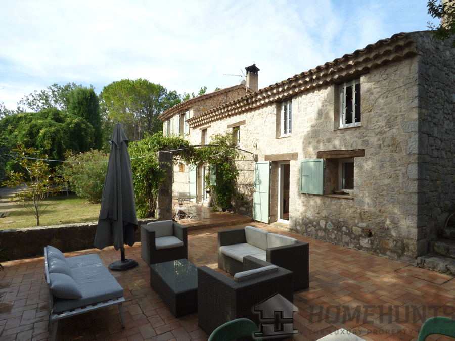 Set on a flat 1.2-hectare estate planted with centuries-old olive trees and fruit trees, this authentic Provencal stone mas offers both charm and comfort in a peaceful yet not isolated setting, enjoying lovely views of the perched village of Fayence.