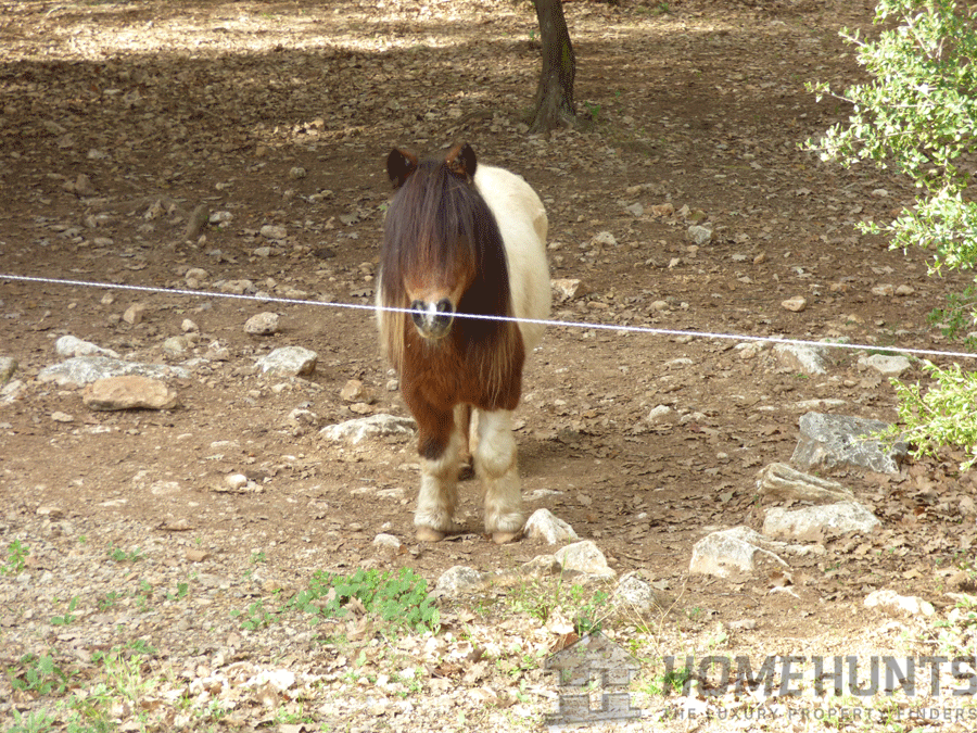 Garage (45m2), horse stables/stalls, saddlery, hayloft with covered terrace, two stone sheds.