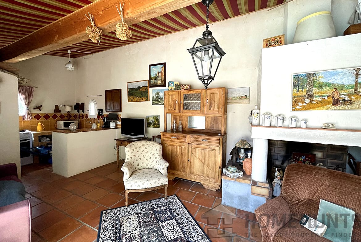 The villa comprises an entrance hall with toilet. The ground floor features Provencal ceilings, a spacious L-shaped living room with fireplace, a separate kitchen opening onto a covered terrace, two bedrooms and a bathroom.