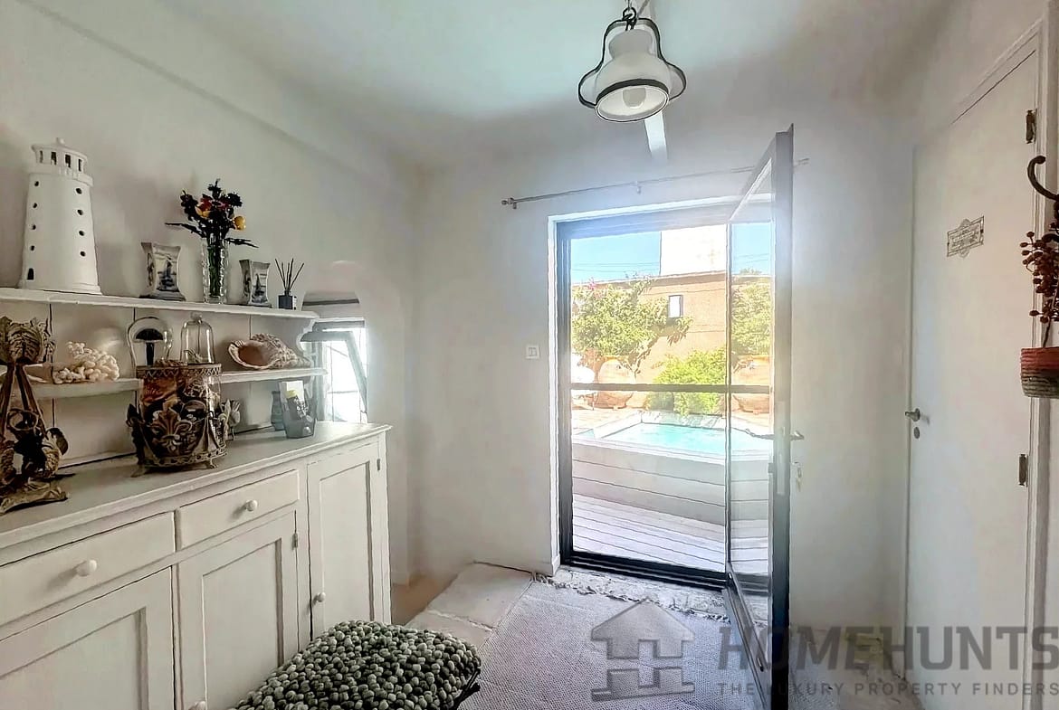 Two sunny courtyards extend the living areas outdoors. One includes a private swimming pool, perfect for cooling off during summer months while requiring minimal upkeep.