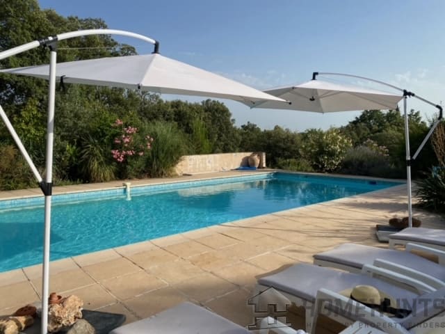 The 11,887m2 garden includes a large swimming pool (63m2), BBQ area, pigeonnier, pétanque pitch, large areas for sports, secluded areas to relax and lovely views over the village of Fox Amphoux.