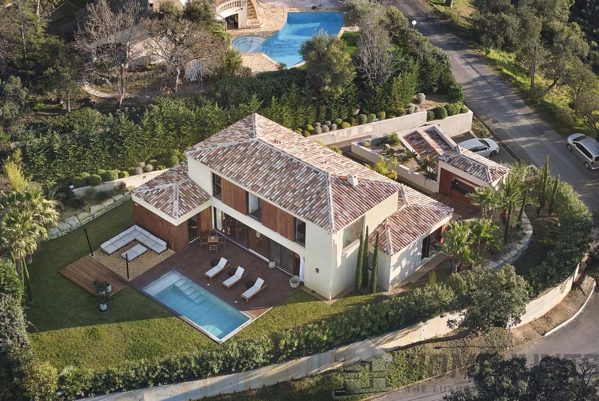 This villa gracefully extends over the ground floor and one upper floor, offering a practical and fluid organization of spaces.