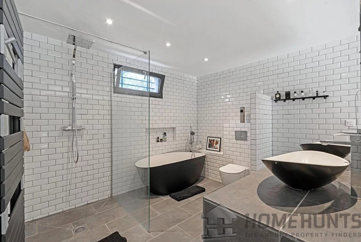 The ground floor features an entrance hall, a living room with fireplace, an open-plan kitchen with dining area, as well as a beautiful and spacious master suite on one level. The first floor comprises two further suites and two bedrooms.