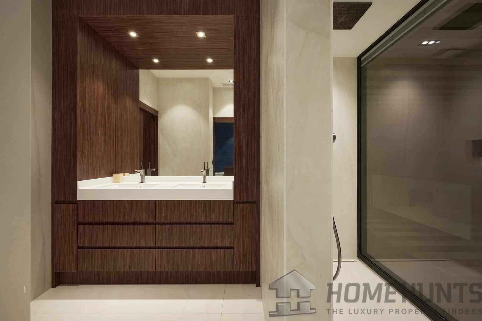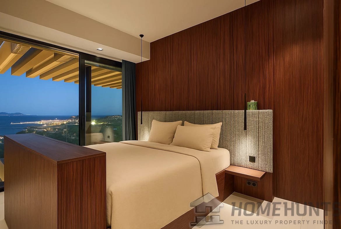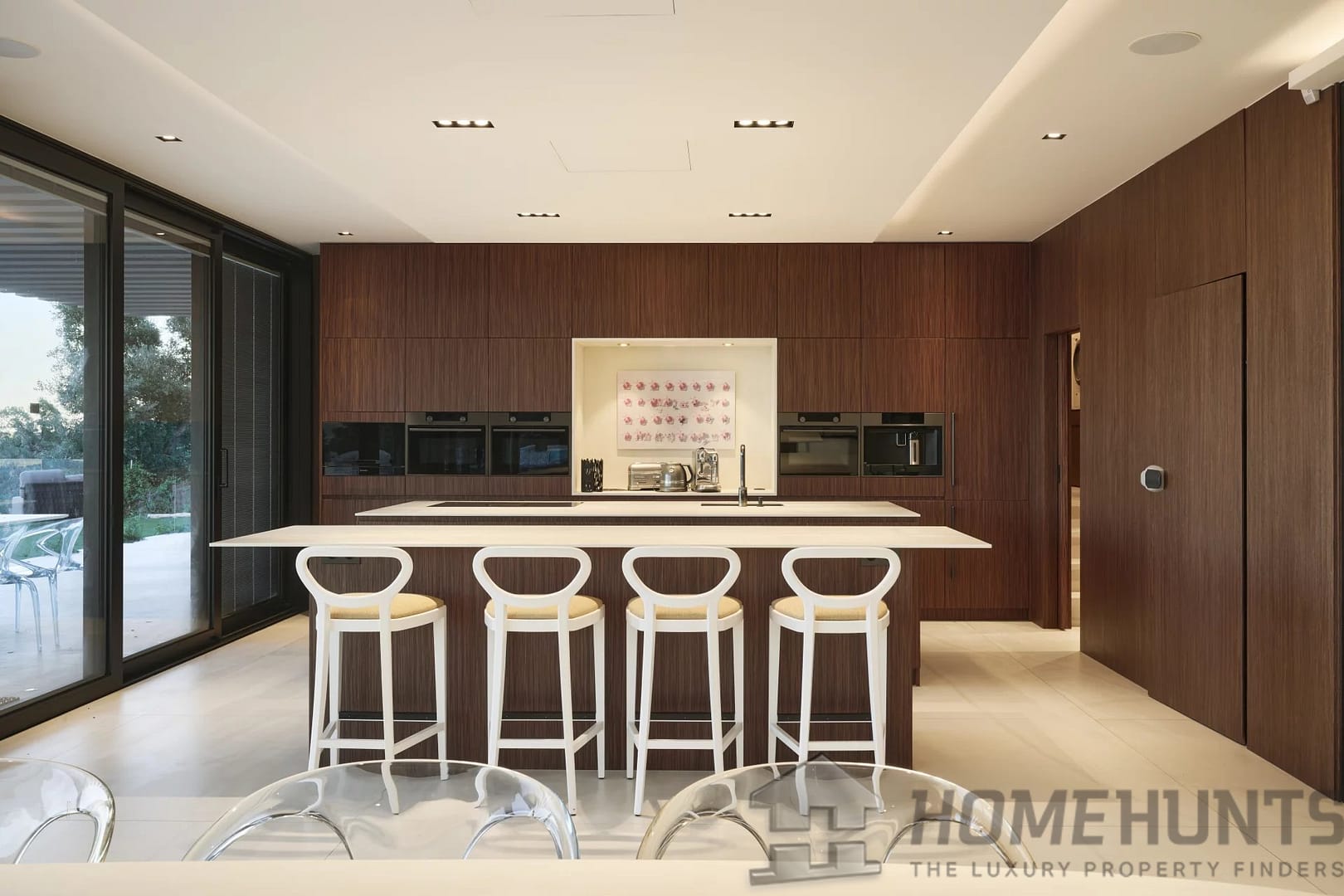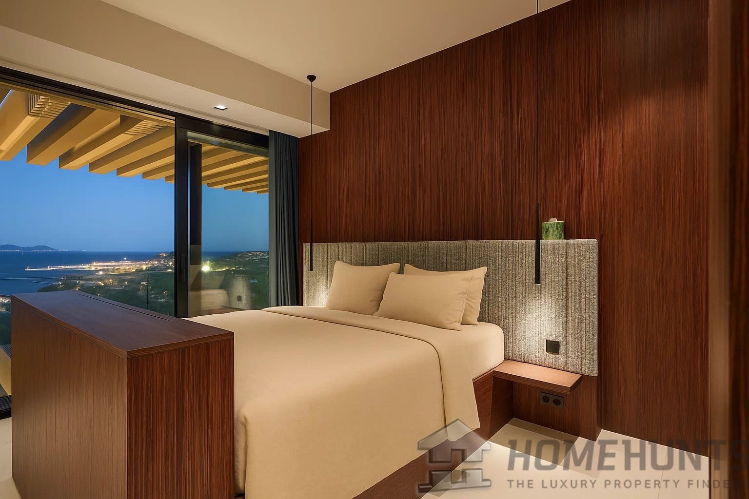The villa includes five luxurious en-suite bedrooms, each with its own dressing room, as well as a fully equipped fitness room, a sauna, and a separate guest or staff apartment.