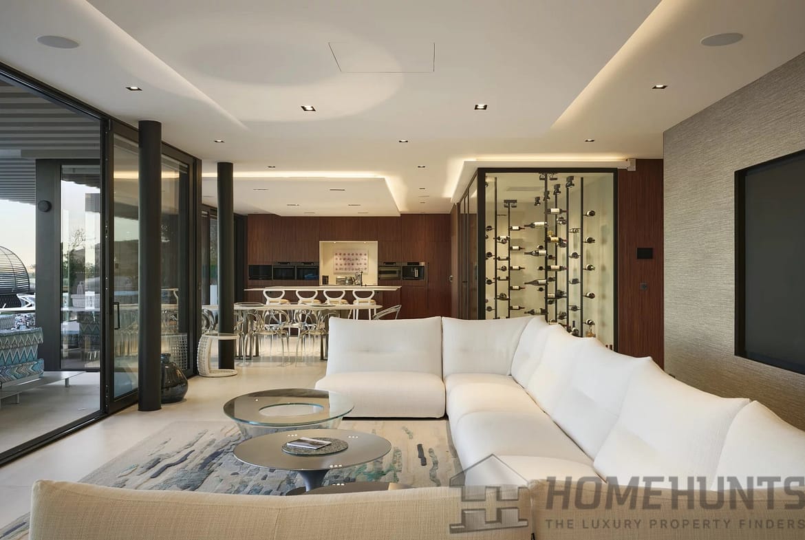 Designed with clean architectural lines and expansive floor-to-ceiling windows, the villa is bathed in natural light throughout. The main living area is both bright and spacious, featuring a refined dining room, a stylish bar, and several reception lounges – all offering uninterrupted sea views.