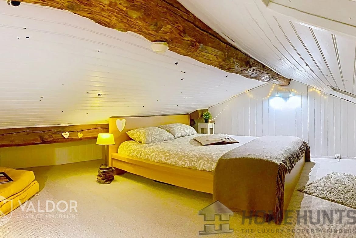 The ground floor includes a spacious, light-filled living area opening onto a modern fully equipped kitchen, ideal for convivial moments. A cosy living room with a fireplace for winter evenings and a master suite complete the ground floor.